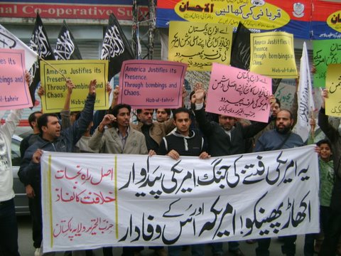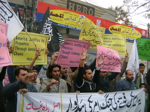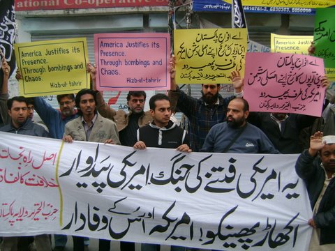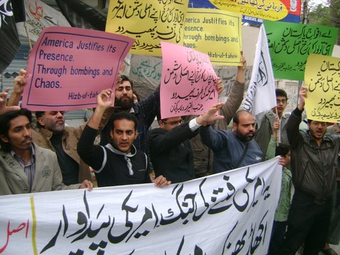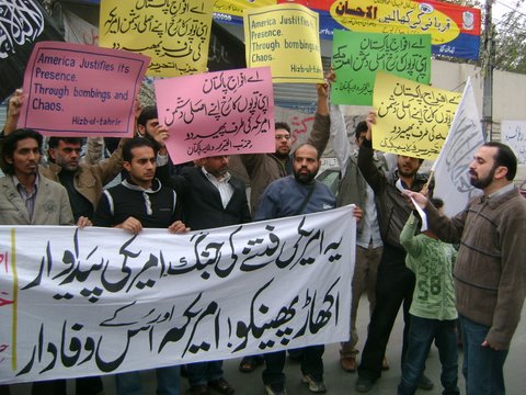مظاهرة في مدينة لاهورنظمها حزب التحرير للتنديد بالوجود الأمريكي في باكستان