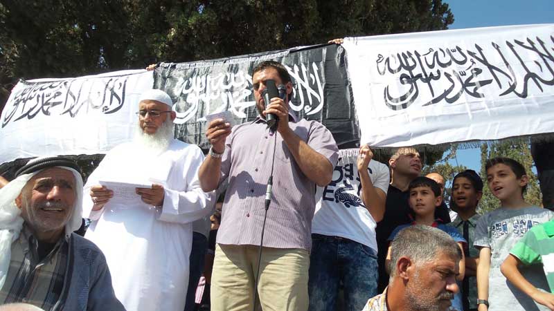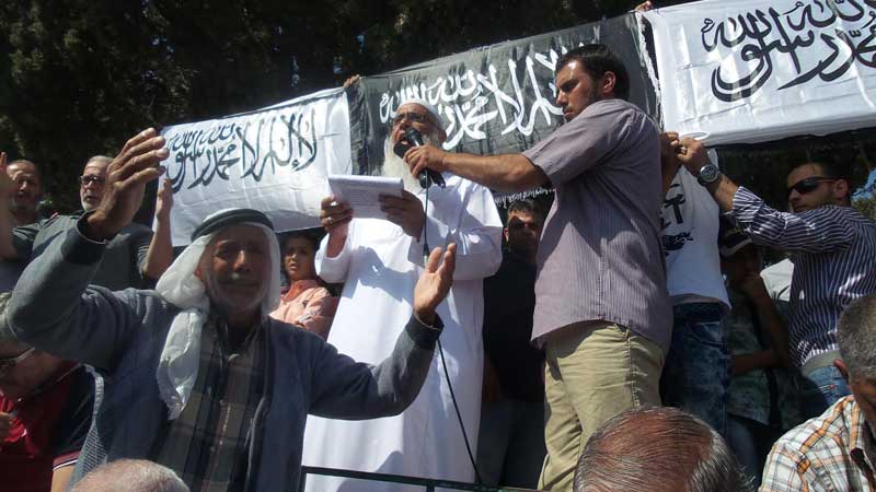 وقد ألقيت كلمة في الحشود خاطب المتحدث فيها أهل الشام بقوله "من بيت المقدس نخاطبكم ... من معراج رسول الله نناديكم ... ومن المسجد الأقصى نستصرخكم ... ونقول لكم ... ليس لكم إلا أن تعضوا على دين الله بالنواجذ ... فلا كاشف للبلاء إلا الله ... ولا ناصر إلا الله ... لا تلتفتوا إلى الغرب ومشاريعه... انبذوا أولياء الشيطان ودعاة أبواب جهنم ... انبذوا العملاء بكل أطيافهم... انبذوا مشاريع الكفار بكل مشاربها... ولكم فيما حل بفلسطين والمسجد الأقصى عبرة وعظة، فاعتصموا بحبل الله المتين وحده، وتمسكوا بثوابت ثورتكم، بإسقاط النظام وقطع رأس الأفعى في دمشق والانعتاق من كل تبعية وإقامة الخلافة على منهاج النبوة".