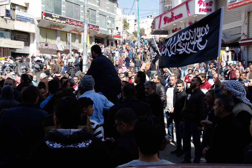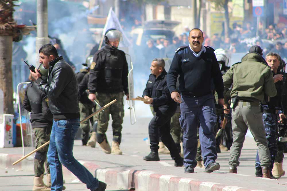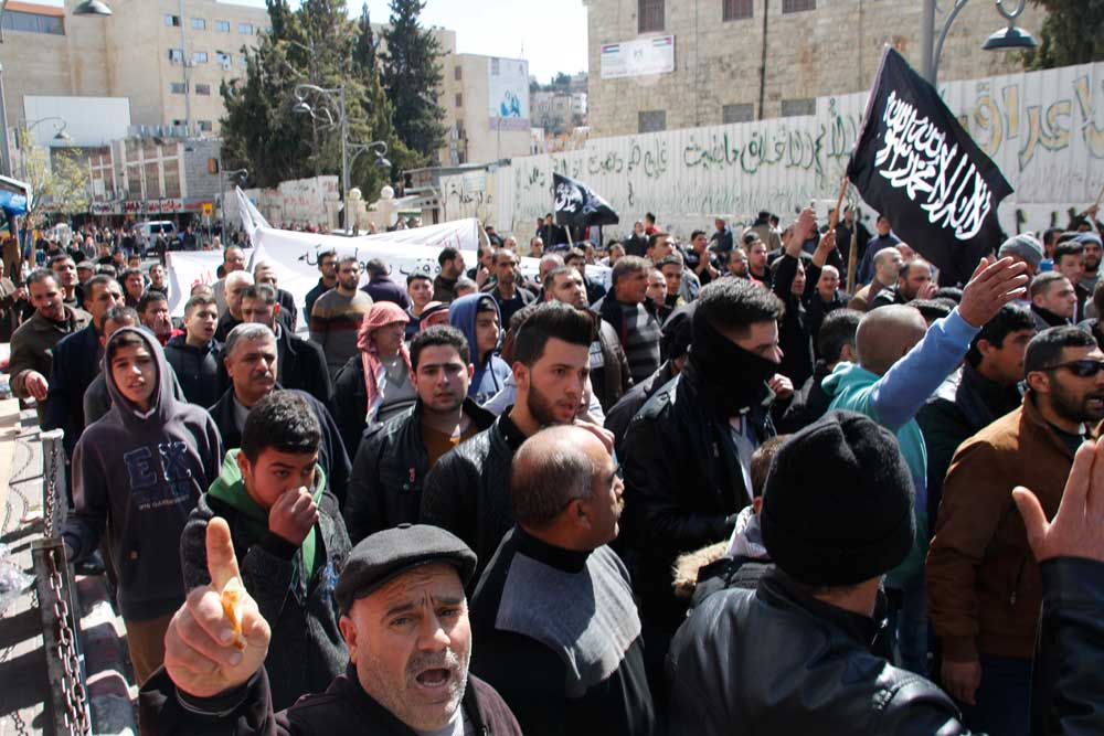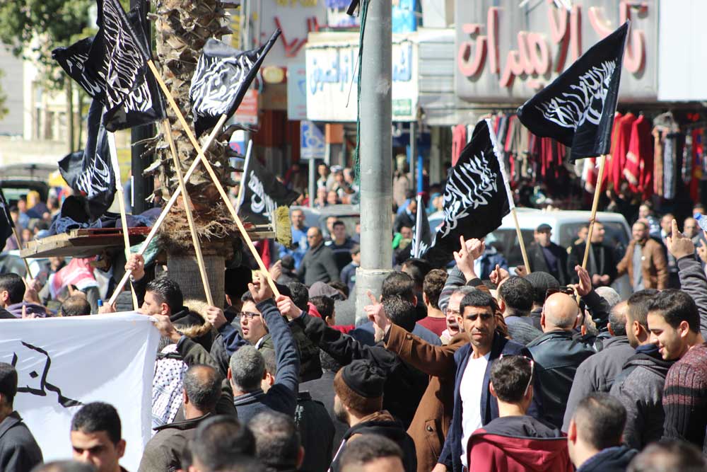 لقد تجمع جمع غفير بالقرب من دوار ابن رشد في مدينة الخليل، ظهر اليوم السبت 2017/2/25، ورفعوا الرايات السوداء ولواء الرسول الأبيض، وهتفوا ضد الاعتقال السياسي، ونددوا بجرائم السلطة، وألقيت كلمة في الجموع التي حاولت السلطة تفريقها بالقوة والغاز المسيل للدموع، هذا بالرغم من الحواجز التي نصبتها السلطة على المفارق لمنع وصول الناس والمشاركة في الوقفة.