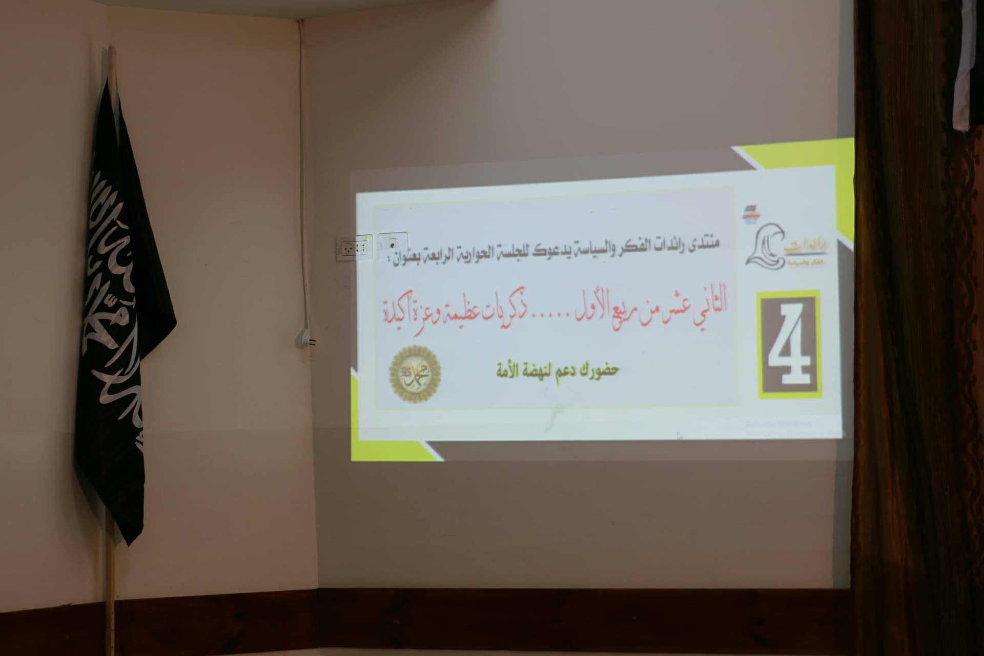 عقدت شابات حزب التحرير في الأرض المباركة فلسطين؛ في بلدة بتير يوم السبت الموافق 09/12/2017، الجلسة الحوارية الرابعة لمنتدى رائدات الفكر والسياسة بعنوان: "الثاني عشر من ربيع الأول... ذكريات عظيمة وعزّة أكيدة"، وقد حضرته ما يزيد عن 200 امرأة وفتاة.