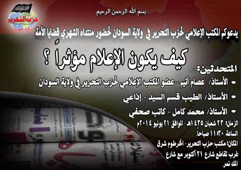 ولاية السودان دعوة لحضور منتدى قضايا الأمة "كيف يكون الإعلام مؤثراً؟" 21 من شـعبان 1435هـ الموافق الخميس, 19 حزيران/يونيو 2014مـ كٌن أول من يعلق! بسم الله الرحمن الرحيم تعليقات الزوَّار تأكد من ادخال المعلومات في المناطق المشار إليها ب(*) . علامات HTML غير مسموحة اسم * البريد الإلكتروني * رابط الموقع أدخل النص أدناه نص التعليق * أدخل رسالتك هنا... عد إلى الأعلى