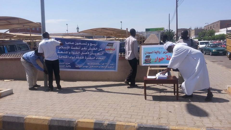 كما أقامت محلية الخرطوم نقطة حوار أمام جامعة أفريقيا العالمية إحياء لذكرى هدم الخلافة رفعت فيها الرايات والألوية بشكل مهيب لافت للنظر مما جعل الناس يتجمعون حول النقطة بكثافة، وألقيت فيها كلمة عبارة عن تذكرة بوجوب الخلافة ووجوب العمل لإقامتها. وشهدت الباحة أمام الجامعة نقاشات جادة وتفاعلاً امتلأ بالمشاعر الإسلامية، حيث أصر الطلاب من دول شرق آسيا وغيرها على مساعدة الشباب في رفع الرايات والألوية.