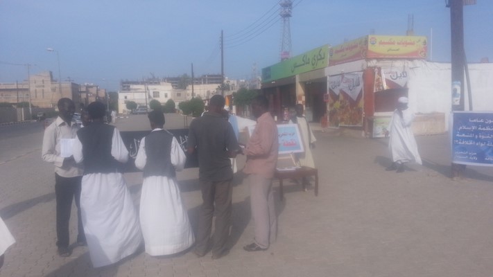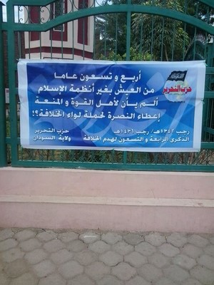 وفي محلية الخرطوم أقام الحزب نقطة حوار في وسط البلد، تقاطع شارع الحرية مع شارع السيد عبد الرحمن، حيث حضرها عدد غفير من الجماهير، وكان منظر الشباب وهم يرفعون رايات العقاب والألوية يؤجج مشاعر المسلمين، مما جعلها نقطة حوار مهيبة، تفاعل معها أبناء الأمة بشكل لافت للنظر، وأيضاً وزعت بعض إصدارات الحزب، من بينها نشرة بعنوان: (أربعة وتسعون عاماً من العيش بغير أنظمة الإسلام وأحكامه، ألم يأن لأهل القوة والمنعة إعطاء النصرة لحملة لواء الخلافة؟!).