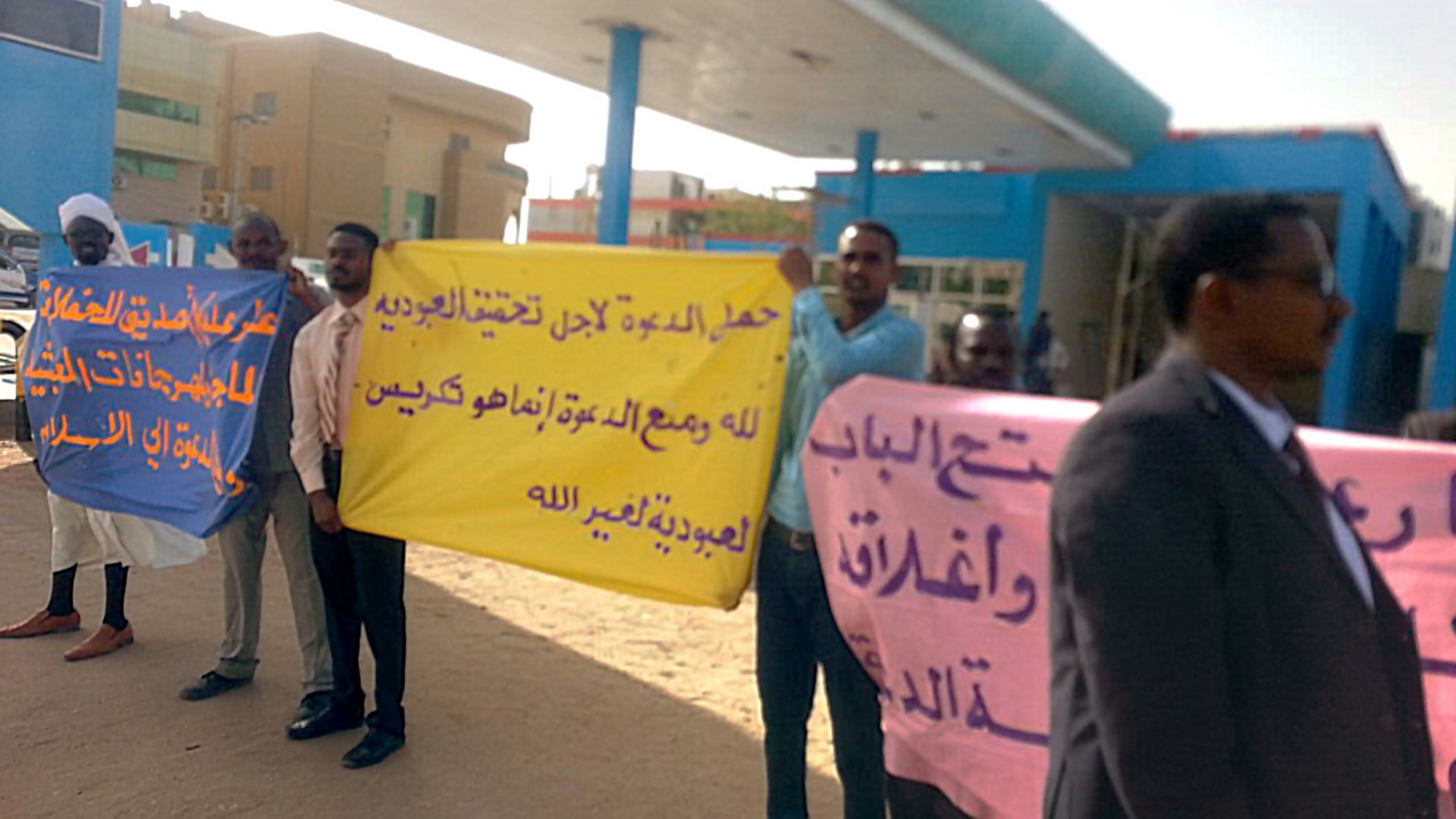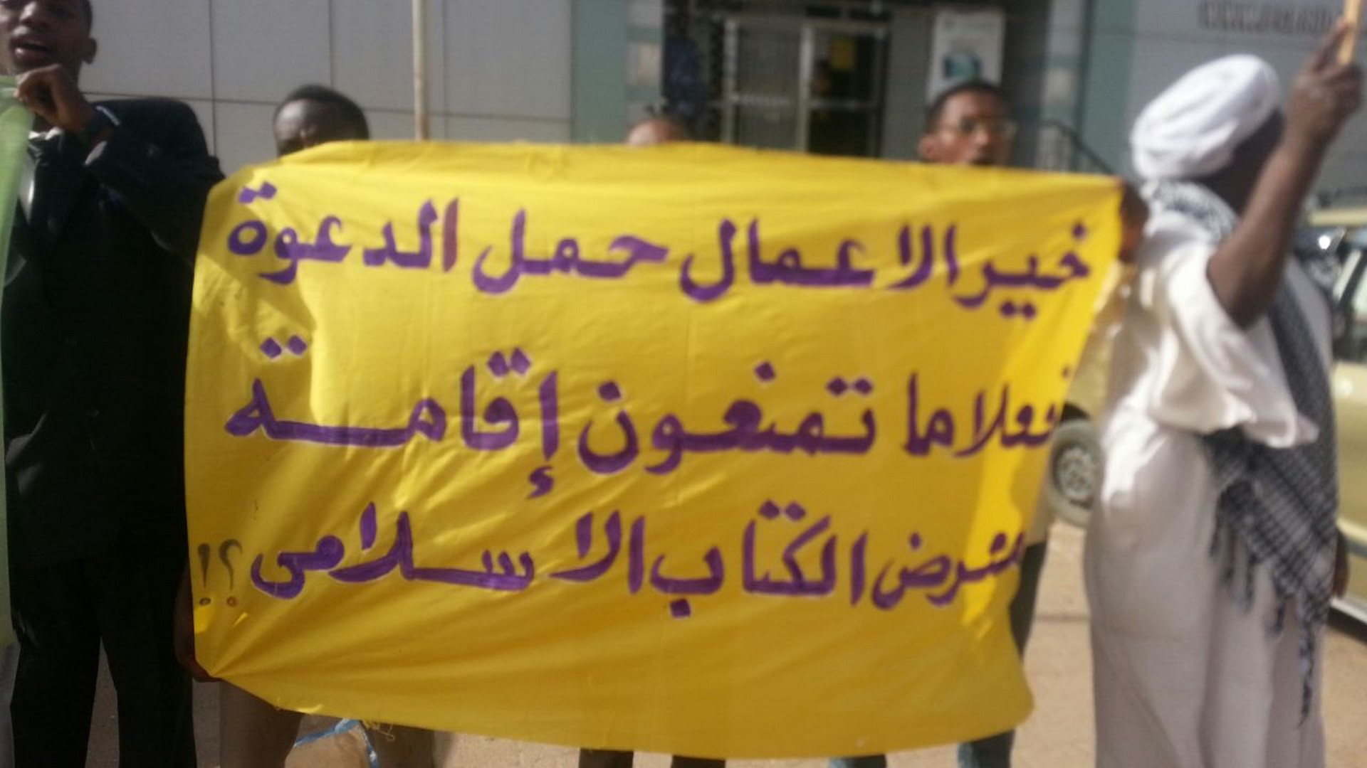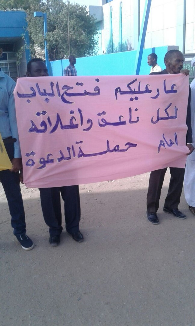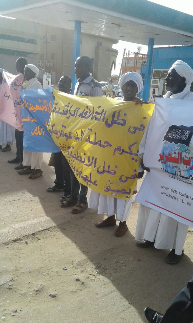 وقفت جماهير مدينة الأبيض (عروس الرمال) وقفةً احتجاجيةً، سلمية، صباح اليوم الأحد، 27 جمادى الآخرة 1438هـ الموافق 26 آذار/مارس 2017م، قادها شباب حزب التحرير/ ولاية السودان بمحلية الأبيض 420 كم جنوب غرب الخرطوم، معبرين عن رفضهم للاستبداد المتجسد في منع حملة الدعوة، من إقامة معرض للكتاب الإسلامي في الساحات العامة، ينشدون من خلاله نشر الوعي بين الناس، وثقافة الإسلام العظيم.