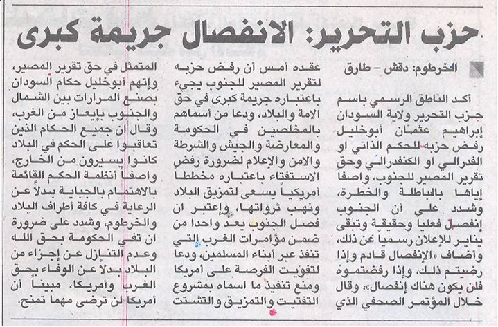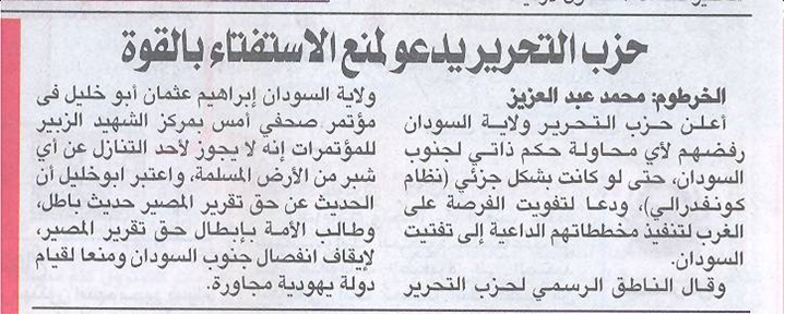 2. صحيفة القوات المسلحة 02/05/2010 العدد (2084) صفحة 3 (هذه الصحيفة ناطقة بلسان القوات المسلحة في السودان، وكثيراً ما تتفادى هذه الصحيفة نقل أعمال الأحزاب).