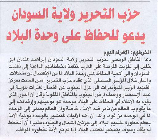 وكذلك أوردت عشر صحف في الخرطوم صباح اليوم الأحد02/05/2010 خبراً عن المؤتمر والندوة التي أقامها الحزب عقب المؤتمر الصحفي، وهي: