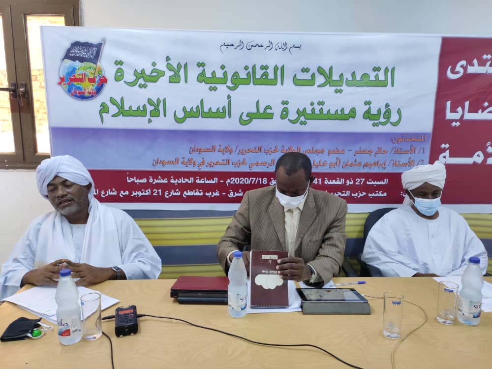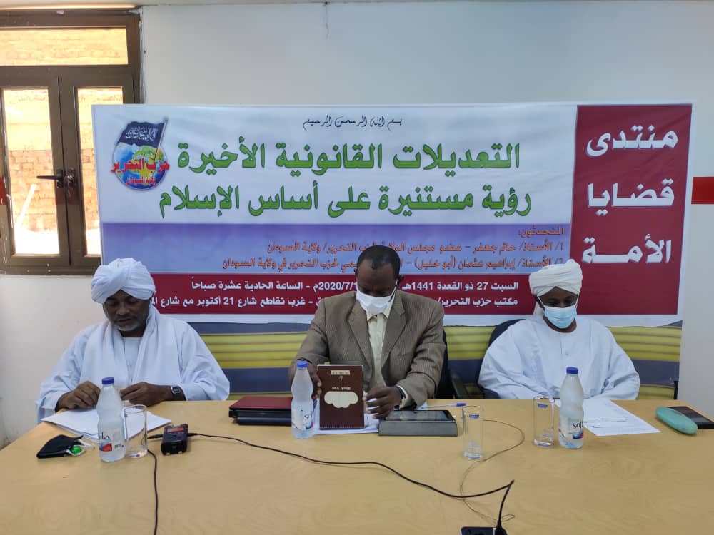 عقد حزب التحرير/ ولاية السودان منتداه الدوري، (منتدى قضايا الأمة)، وقد نبه مقدمه منذ البداية إلى أنه نسبة لتتابع الأحداث، وكثرة القضايا التي تحتاج لرؤية صادقة؛ فقد رأى الحزب أن يتحول المنتدى من شهري إلى أسبوعي، اعتباراً من هذه الجلسة السبت 27 ذو القعدة 1441هـ الموافق 18/7/2020م - الساعة الحادية عشرة صباحاً، وقد ناقش المنتدى هذه المرة حزمة التعديلات القانونية الأخيرة وفق رؤية شرعية عميقة، بعنوان: