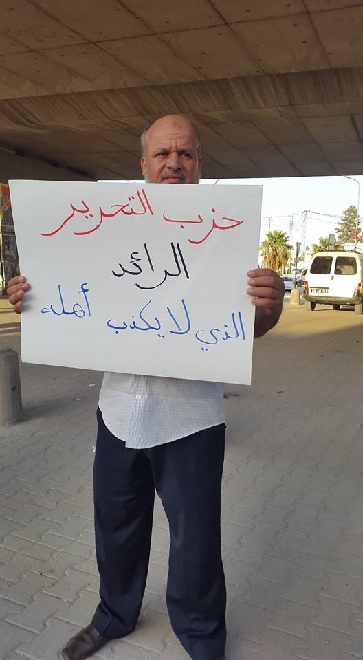 نظم حزب التحرير / ولاية تونس أمام مقره بأريانة وقفة احتجاجية رفضاً للوضع السياسي القائم في البلاد، وقد تم رفع شعارات من بينها: "أوقفوا تخاذل السياسيين وارتهانهم للأجنبي"، "العمل السياسي على أساس الإسلام حق وواجب"، "حزب التحرير هو الذي كشف جريمة نهب الثروات من قبل الشركات الأجنبية".