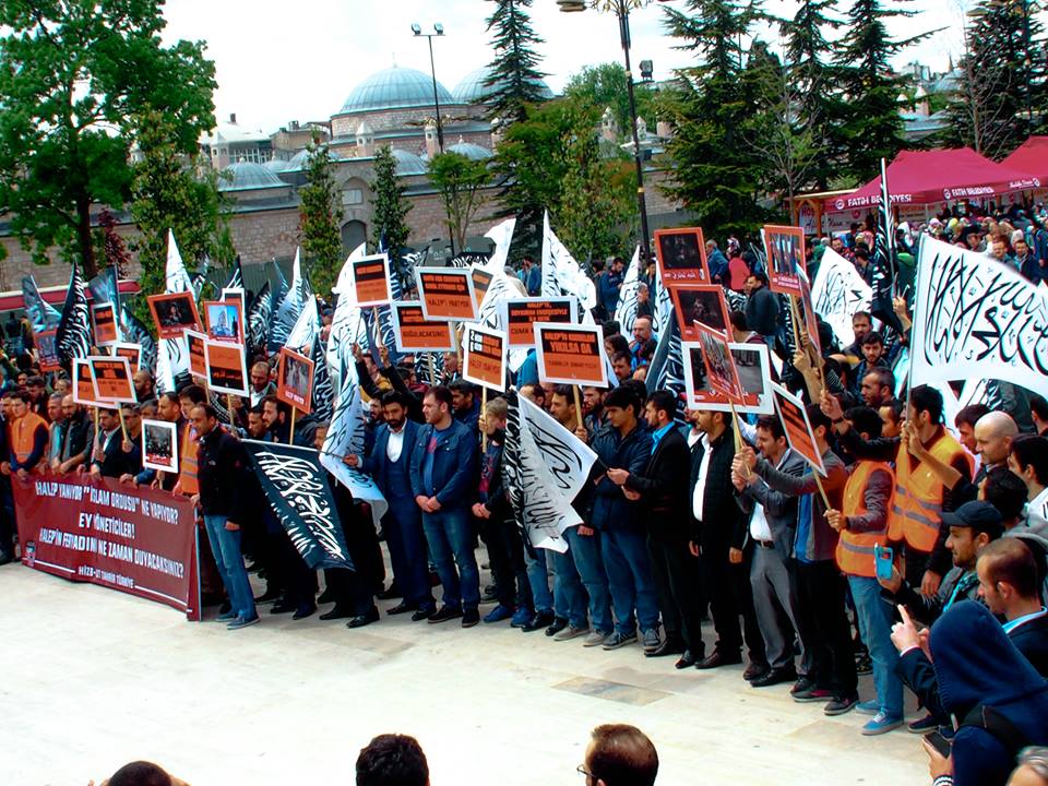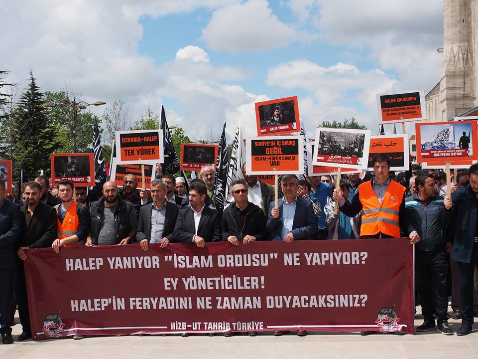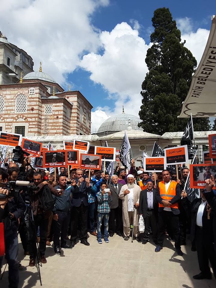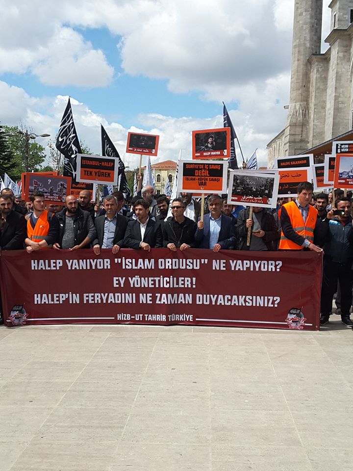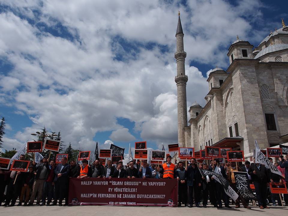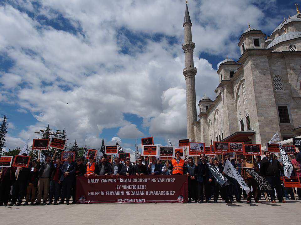 دعا حزب التحرير / ولاية تركيا الجماهير المسلمة للاحتشاد عقب صلاة الجمعة 2016/05/06م في جامع السلطان محمد الفاتح في إسطنبول نصرة ومؤازرة لثورة الشام عامة ولأهل حلب خاصة الذين يرزحون أطفالاً ونساء وشيوخاً تحت حمم قنابل النظام البعثي الفاجر، وتخلل الاحتشاد أداء صلاة الغائب على أرواح قتلى المسلمين في مدينة حلب...