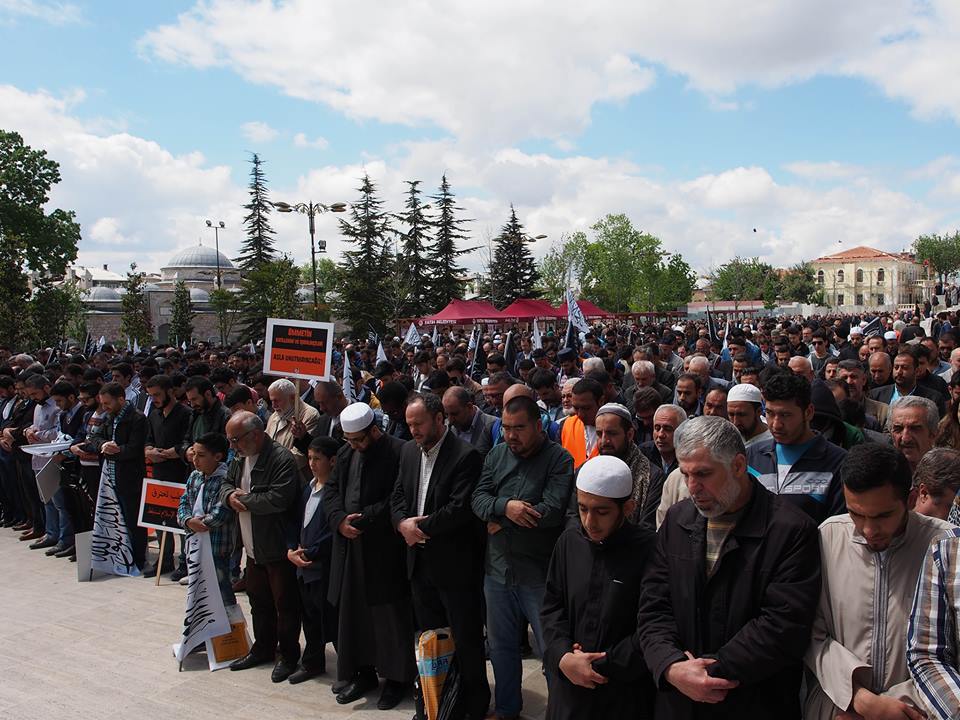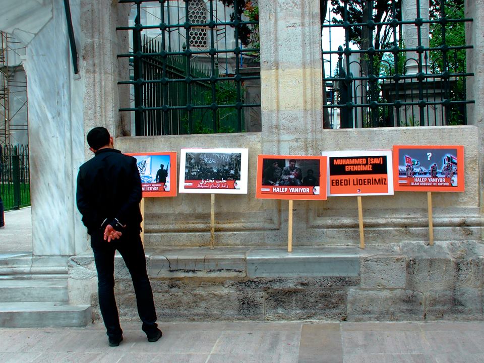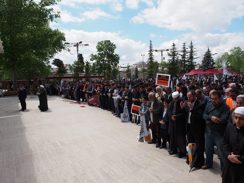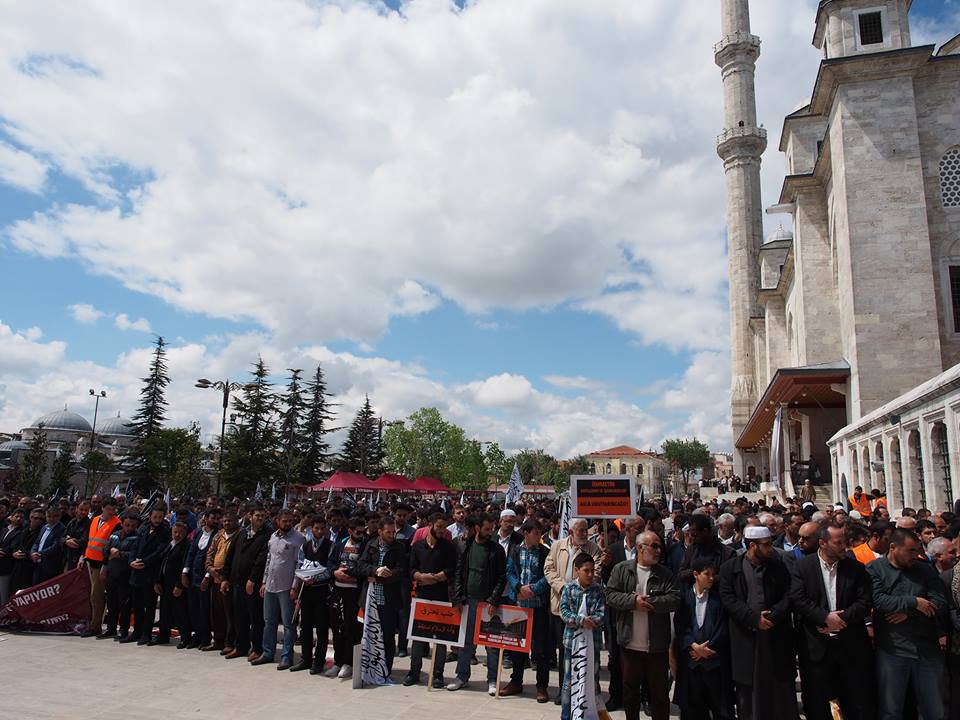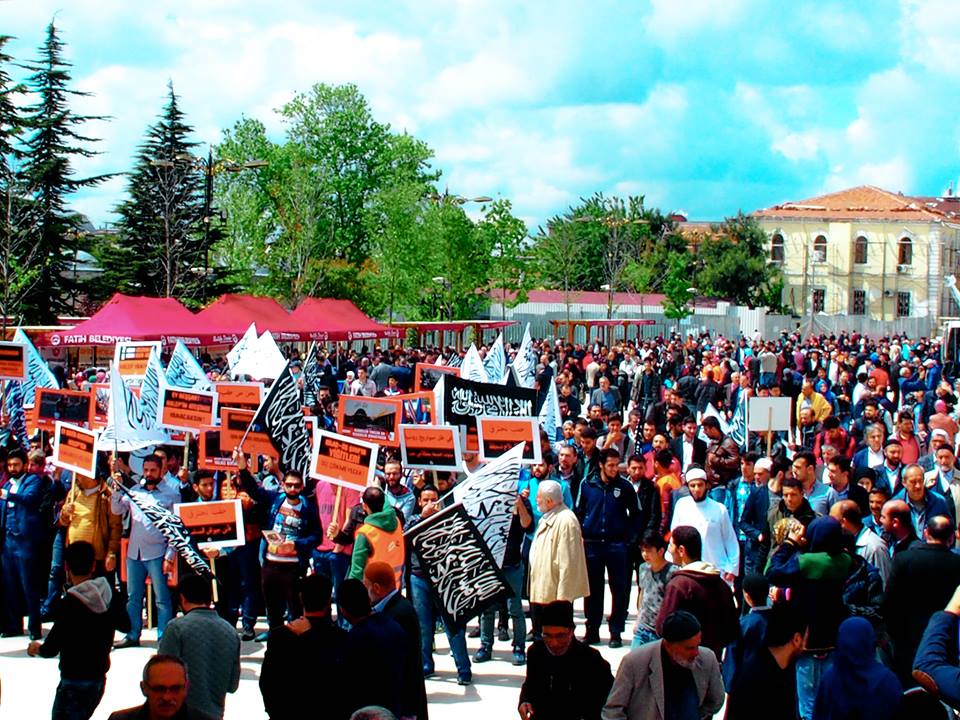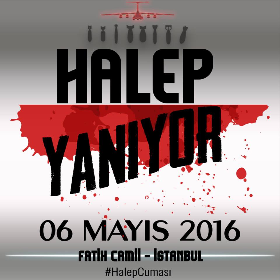 دعا حزب التحرير / ولاية تركيا الجماهير المسلمة للاحتشاد عقب صلاة الجمعة 2016/05/06م في جامع السلطان محمد الفاتح في إسطنبول نصرة ومؤازرة لثورة الشام عامة ولأهل حلب خاصة الذين يرزحون أطفالاً ونساء وشيوخاً تحت حمم قنابل النظام البعثي الفاجر، وتخلل الاحتشاد أداء صلاة الغائب على أرواح قتلى المسلمين في مدينة حلب...
