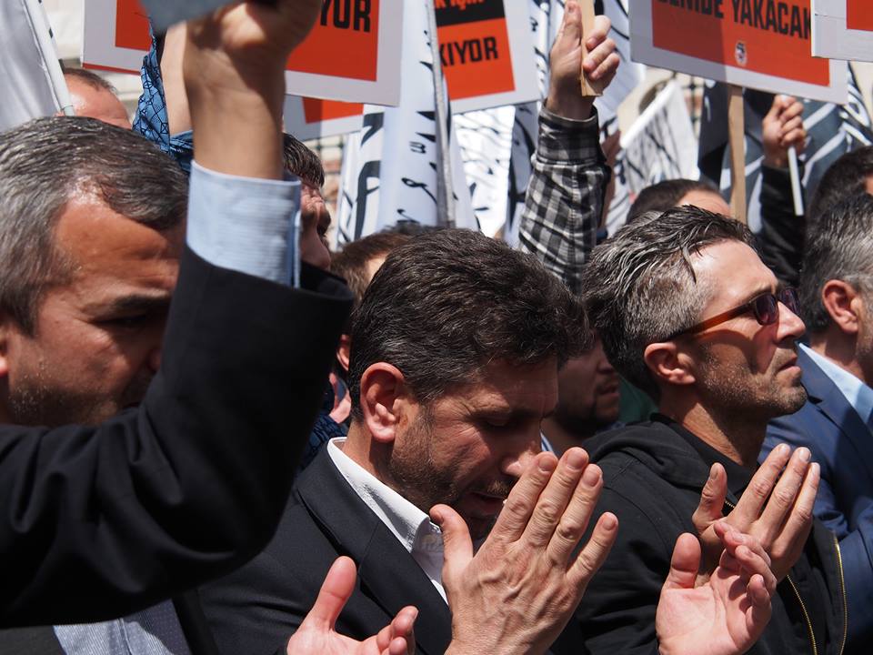 لقد جئنا معا مرات عديدة من أجل الثورة السورية. أحيانًا اجتمعنا هنا من أجل إدانة وحشية بشار وشبيحته، وأحيانا من أجل دعم إخواننا وأخواتنا من أهل سوريا الذين يستحقون كل الفخر، وأحيانًا من أجل القيام بواجبنا نحو شهدائنا بالصلاة عليهم صلاة الغائب، وأحيانًا اجتمعنا في المساجد والساحات لأداء صلاة القنوت من أجلهم حين كانوا في أمس الحاجة لها. بصفتنا مسلمين من تركيا، شاركنا خبزنا اليومي معهم، رحبنا بهم على الرغم من أولئك الذين قالوا "لا! لا يجدر بهم المجيء!"، وأبدينا أخوّة الأنصار والمهاجرين. رضي الله عن الذين ساعدوا مسلمي سوريا على وجه الخصوص، وجميع أمة محمد بشكل عام الذين لم يبتغوا أي مكسب أو مصلحة.