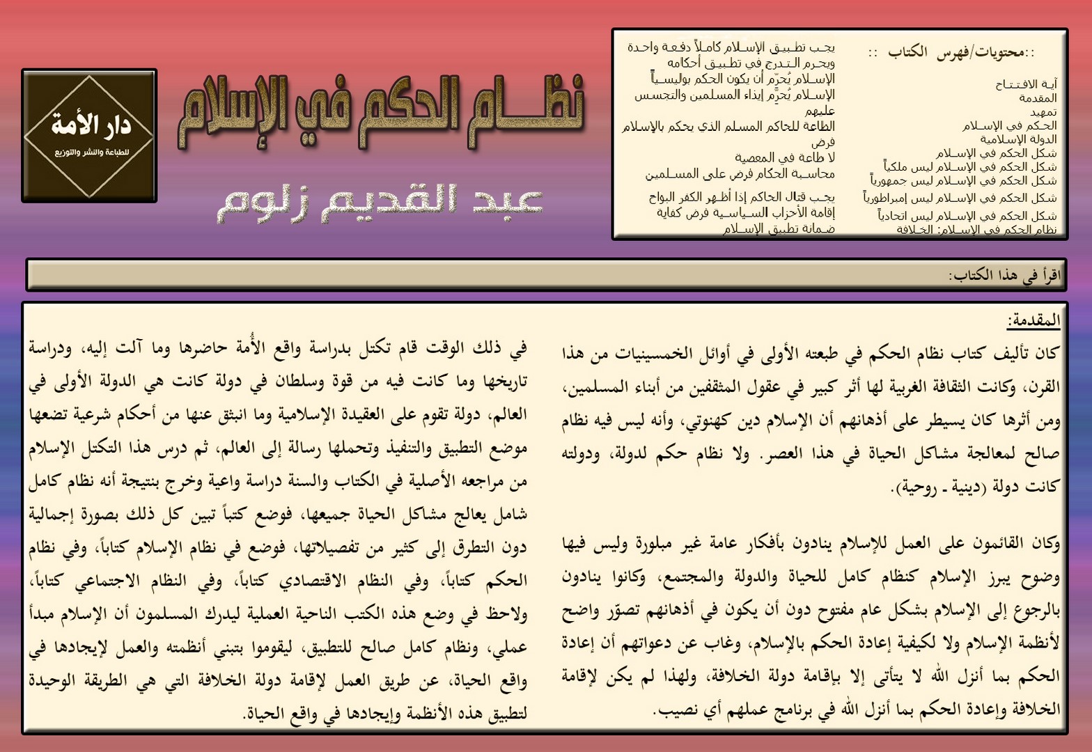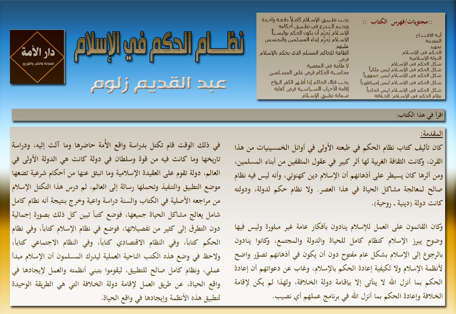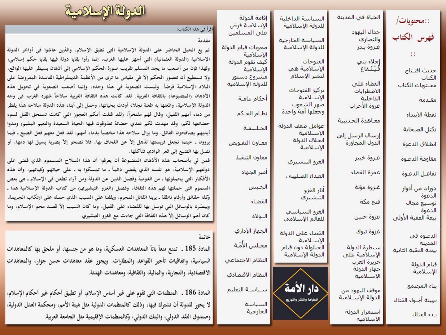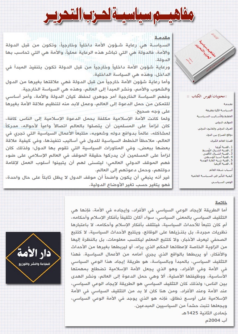 تشارك دار الأمة للطباعة والنشر والتوزيع بجناح رقم (165) في معرض إسطنبول الدولي للكتاب العربي الذي سيعقد في الفترة الواقعة من 01 إلى 09 أيلول /سبتمبر لعام 2018م وذلك في منطقة يني كابي، المُطلّة على ساحل بحر مرمرة، والتي تُعتبر قلب مدينة إسلامبول (إسطنبول)، وستكون مشاركتها ببوتقة من الكتب الإسلامية المستنيرة المتميزة أبرزها منشورات حزب التحرير.