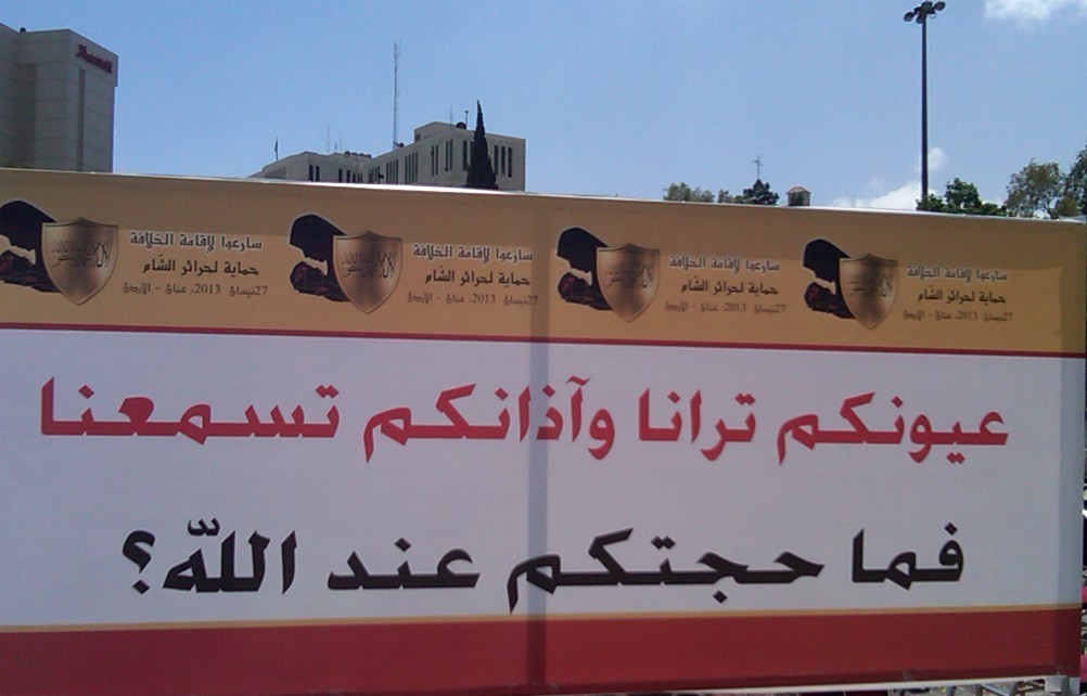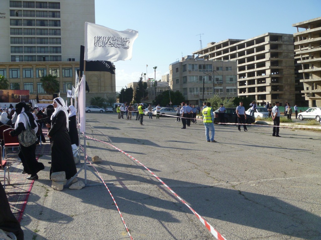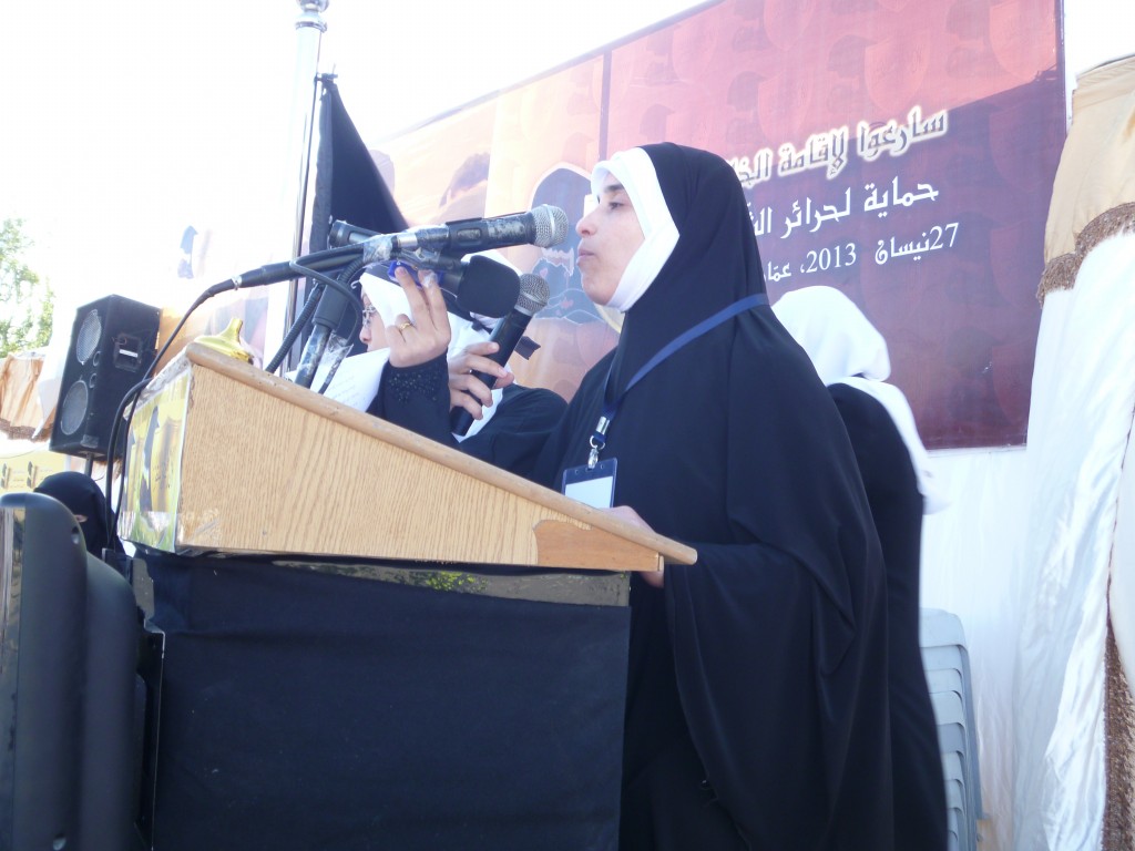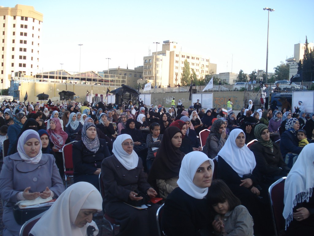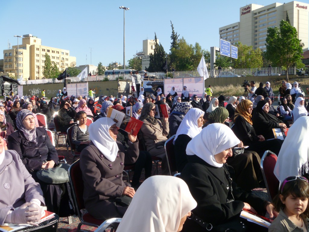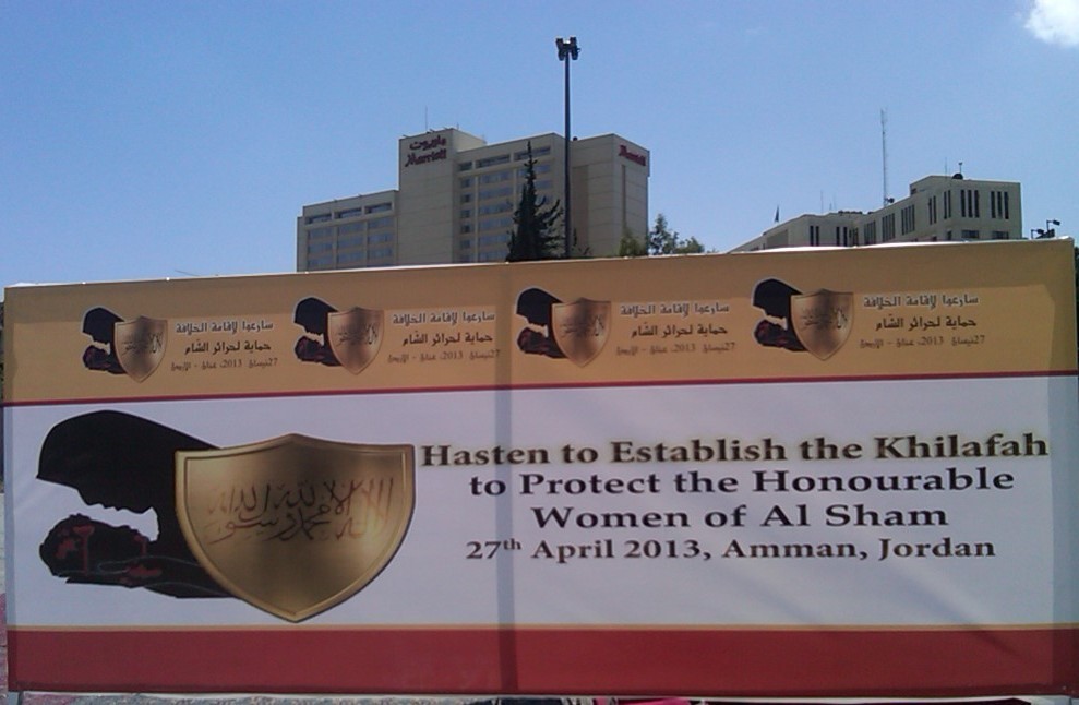 تم بحمد الله مهرجان نصرة حرائر الشام النسائي الذي دعا إليه حزب التحرير / ولاية الأردن يوم السبت 01 رجب 1434هـ الموافق 11 أيار/مايو 2013م والذي يأتي ضمن حملة المسلمين لنصرة ثورة الشام. ووسط وجود أمني كثيف لبّت شابات حزب التحرير وحرائر أردن الشام دعوة الحزب للمهرجان الذي افتتح بكلمة مسجلة لأمير حزب التحرير العالم الجليل العطاء بن خليل أبو الرشتة، وتضمن المهرجان كلمات للأخوات المشاركات ومن نساء الشام اللاتي رَوَيْنَ معاناتهن وصبرهن في مواجهة الطاغية بشار وإقدامهن في الثورة وطلبهن إعادة الخلافة التي ستنقذهن من جور هذه الأنظمة الخائنة لله ولرسوله وللمؤمنين كما تضمن المهرجان عرض فيديو لنشاطات شابات حزب التحرير في العالم لنصرة ثورة الشام.