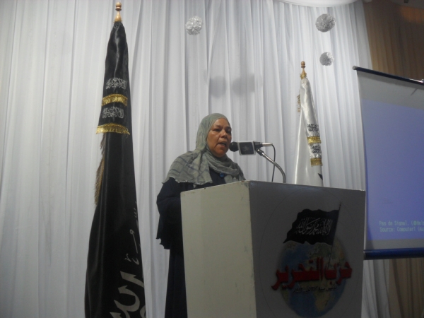 وقد تفاعلت الحاضرات مع الكلمات الملقاة من الأخوات زينة الصامت وخديجة بن حميدة وشادية الصيادي وفادية العثماني فتعالت الأصوات بالتكبير وبشعارات من مثل "الأمة تريد خلافة من جديد"، "من تونس حتى الشام دولة واحدة بالإسلام" وختمت الندوة بدعاء نسأل الله سبحانه أن يتقبله وأن يعجل بنهاية أعوام إثم تعطيل شرع الله وأن تقوم في بلاد الشام عقر دار الإسلام عن قريب راشدة على منهاج النبوة.