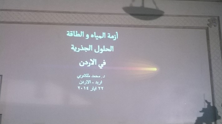 عقدت في مجمع النقابات المهنية في إربد يوم الخميس 2014/5/22م ندوة متخصصة في موضوع أزمة المياه والطاقة والحلول الجذرية في الأردن شارك فيها:
