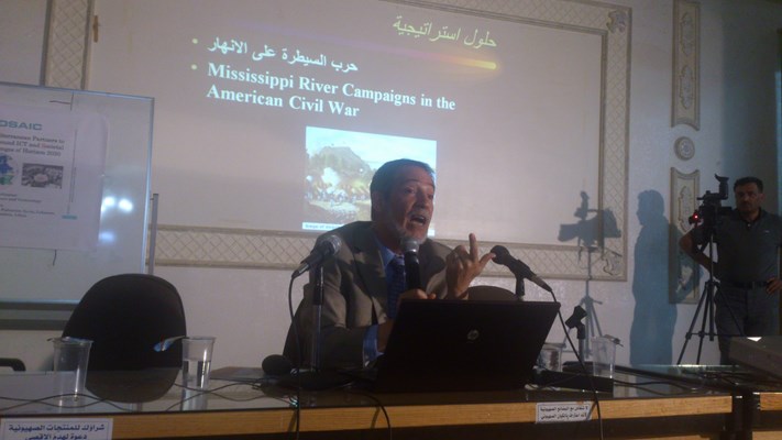 الدكتور المهندس زياد الغزاوي وقد استعرض فيها واقع المياه في الأردن وكمياتها وأماكن وجودها، وحصة الفرد منها، واستعرض أيضا مشاكل القطاع والمشاريع المقترحة دوليا لحل مشكلة المياه في الأردن.