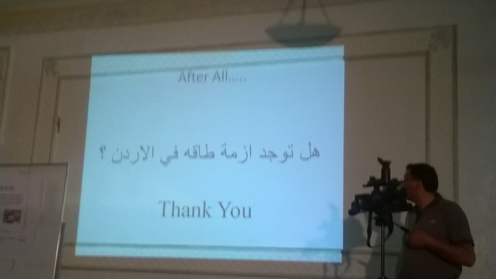 ثم تحدث الدكتور المهندس أحمد حرب عن الطاقة في الأردن واستعرض المشاريع البديلة والمطروحة لتوليد الطاقة المتجددة وأسباب تعثرها، وفشل الدولة في إدارة هذه الموارد.