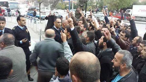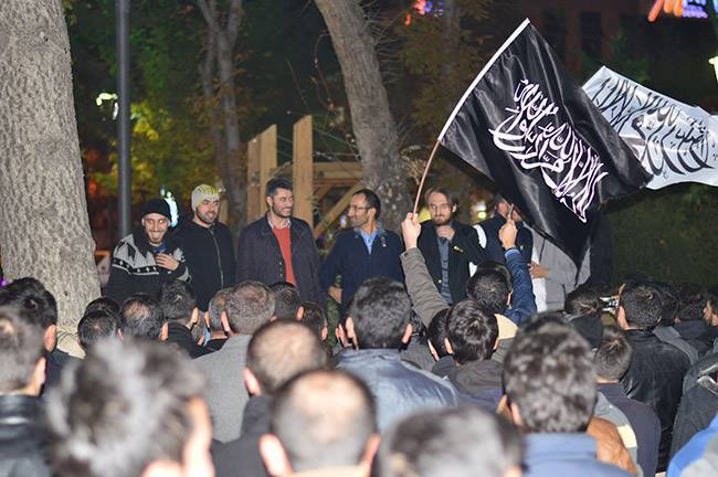 ولاية تركيا: اعتصام أمام المخفر الذي احتجز فيه 6 من أعضاء حزب التحرير نظم أعضاء وأنصار حزب التحرير / ولاية تركيا وقفة أمام مخفر مهمت علي أوزبك في حي كتشي أوران في أنقرة بعد أن تم اعتقال 6 من شباب حزب التحرير هم: سردار كايا، أحمد سفران، أحمد كايغوسوز،