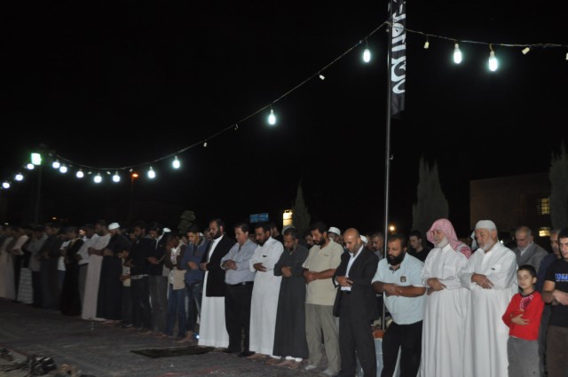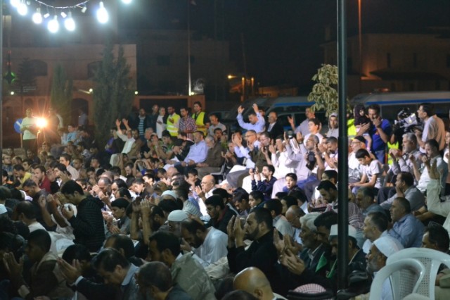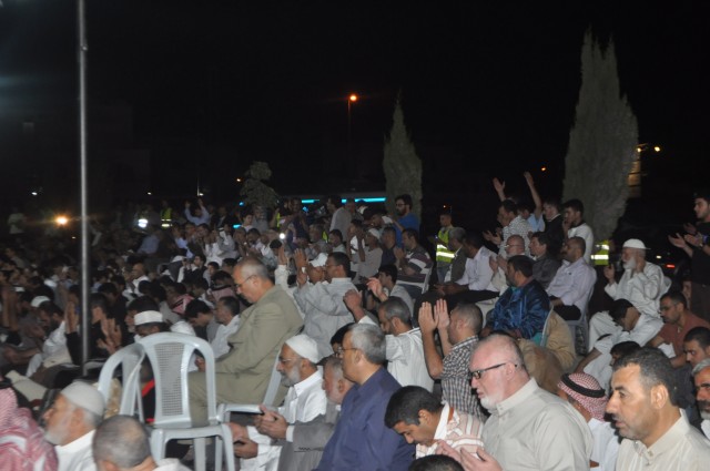 تمت بحمد الله وقفة ليلة التاسع والعشرين من رمضان أمام سفارة نظام المجرم بشار التي دعا إليها حزب التحرير/ ولاية الأردن ضمن الحملة التي ينظمها الحزب في الأردن لنصرة ثورة الشام المباركة تحت عنوان "لأجلك يا حمص، ستبقى عزيزا يا سيف الله المسلول". ووسط وجود أمني كبير لبى حشد من أبناء وبنات أردن الشام هذا النداء حيث أقيمت صلاة القيام التي تخللها كلمات لشباب الحزب بينوا فيها تكالب وتآمر دول الكفر وعملائهم من الحكام على أهل الشام لأنهم طالبوا بالخلافة. واختتمت الوقفة بالدعاء لأهل الشام بالنصر والتمكين وإقامة دولة الخلافة، ثم أدى المحتشدون صلاة الفجر جماعة.