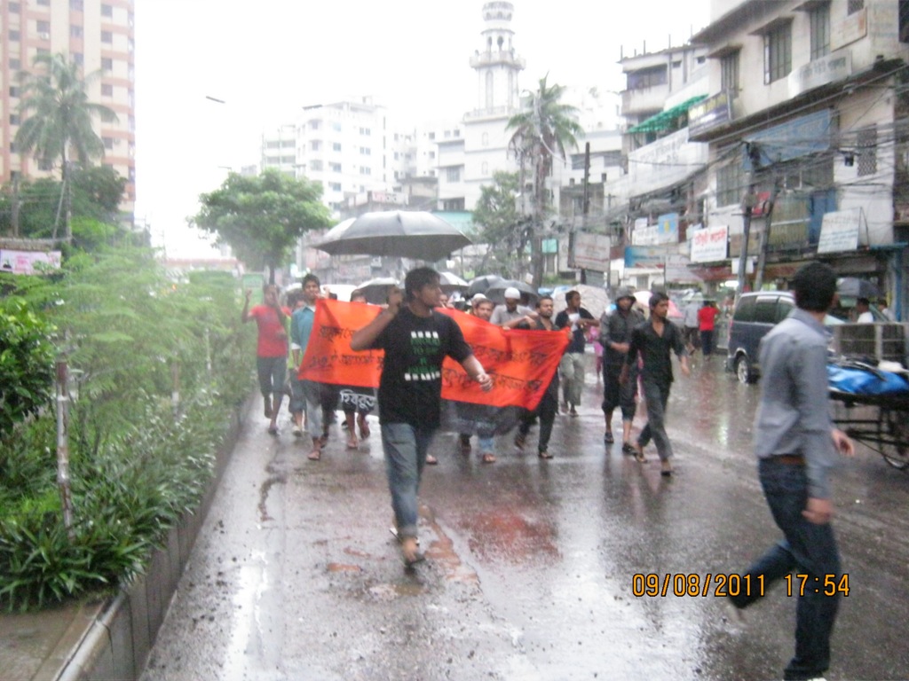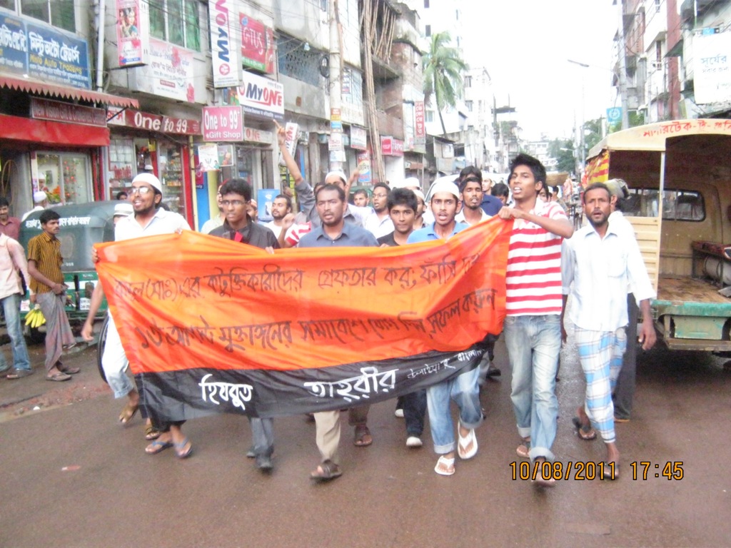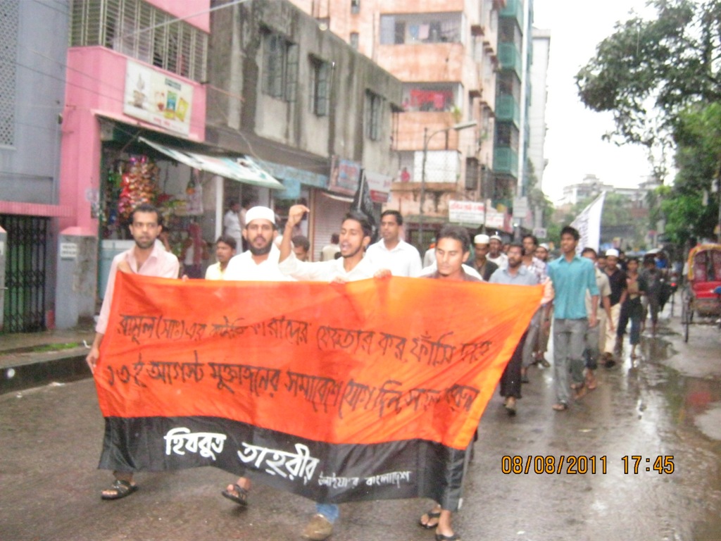 نظم حزب التحرير خلال 3 أيام متتالية (الثامن والتاسع والعشر من آب/ أغسطس) مسيرات في دكا لدعم الاجتماع والمسيرة العامة التي سينظمها في 13 من أغسطس/آب، الساعة 12:00 ظهرا في منطقة ماكتنانغ في دكا، وقد شارك السكان المحليون في جميع أنحاء المدينة في هذه المسيرات، حيث بلغت 14 مسيرة في مناطق عدة من المدينة.