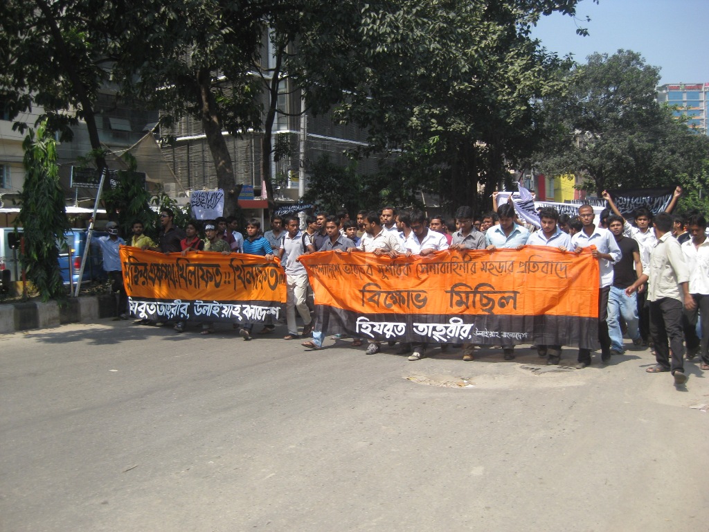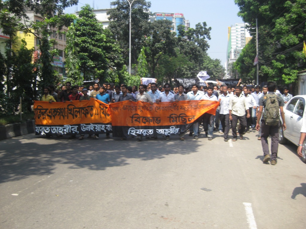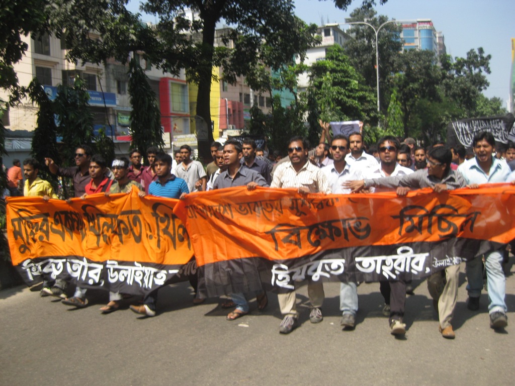 نظم حزب التحرير منتصف هذا اليوم الأربعاء 12/10/2011 مظاهرة ضد المناورات العسكرية الهندية التي تجري في سيلهيت، وقد بدأت المظاهرة من منطقة بيجوي وانتهت خارج المسجد الكبير في العاصمة دكا. وتُعدّ هذه التدريبات التي ستمتد لأسبوعين وبدأت يوم الأحد (9 أكتوبر 2011) الأولى والأطول من نوعها التي تجري على أرض بنغلادش من قبل الجيش الهندي المشرك.