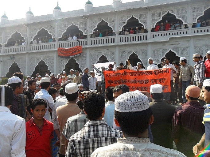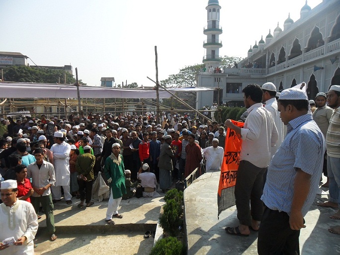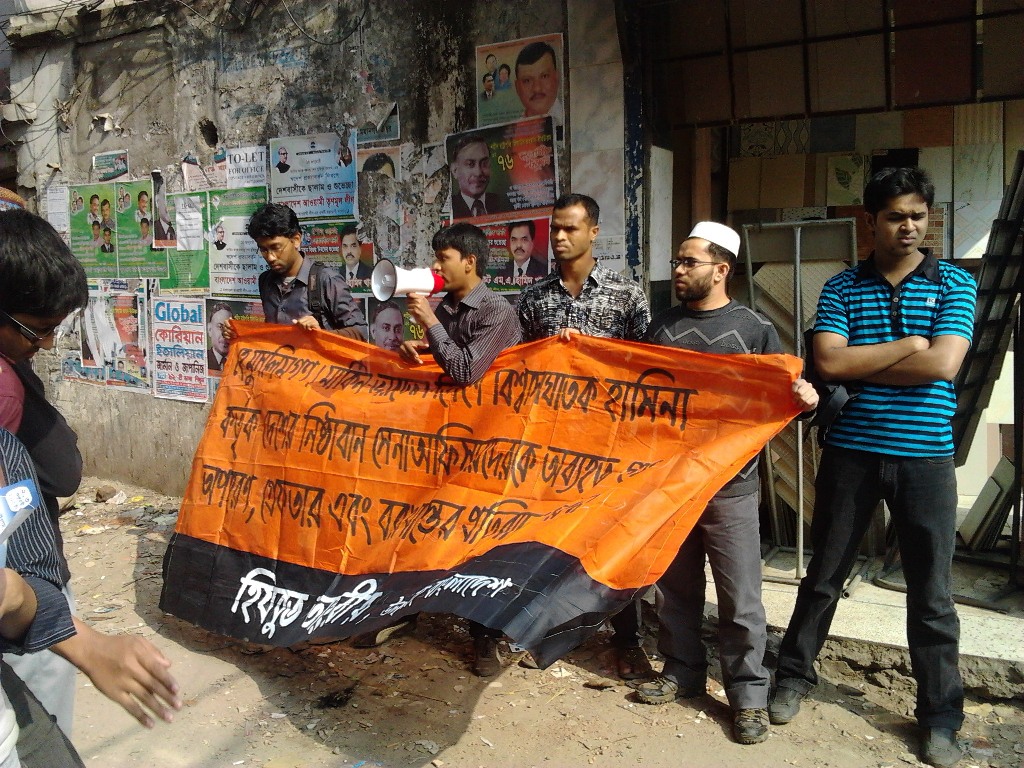 نظّم حزب التحرير خطباً عامةً خارج المساجد في أنحاء البلاد بعد صلاة الجمعة اليوم، حيث دعا الخطباء الشعب للاحتجاج على مؤامرة حكومة الشيخة حسينة لإخضاع جيش بنغلادش المسلم للهند والولايات المتحدة، وقال المتحدثون: إنه جيء بحسينة إلى السلطة من قبل الأمريكيين في شراكة مع الهند، والأمريكيون مصممون على منع عودة الخلافة الإسلامية في هذه المنطقة، إضافة إلى احتواء صعود الصين، لهذا الغرض فهي تفضل شراكة إستراتيجية مع الهند من أجل ضمان وجودها القوي في هذه المنطقة ولتشديد قبضتها على البلدان الإسلامية في المنطقة، لذلك تستخدم أمريكا الحكومة والمعارضة وبعض الضباط من القيادة العسكرية في بنغلادش، تستخدم هؤلاء العملاء لحل القضايا طويلة الأمد العالقة مع الهند لإطلاق أيدي الهند في المنطقة. ومن شأن هذا أن يسهل على الهند التعاون مع أمريكا في تنفيذ خطتها لمنع عودة الإسلام واحتواء الصين، وهم يعملون على إزالة جميع العقبات التي تعترض هذه الخطة وأيِّ شخص يتحدث ضد هذه الخطة الشريرة؛ لهذا السبب، تم ذبح ضباط الجيش المخلصين في مجزرة "حرس الحدود" التي تواطأت فيها الشيخة حسينة، ولهذا السبب حظرت حسينة حزب التحرير وانتهجت سياسة القمع الوحشي ضد الحزب، وها هي الآن تقوم بعملية (تطهير) كامل للجيش من جميع الضباط الذين يقفون بجانب الإسلام وسيادة البلد وأمنه.