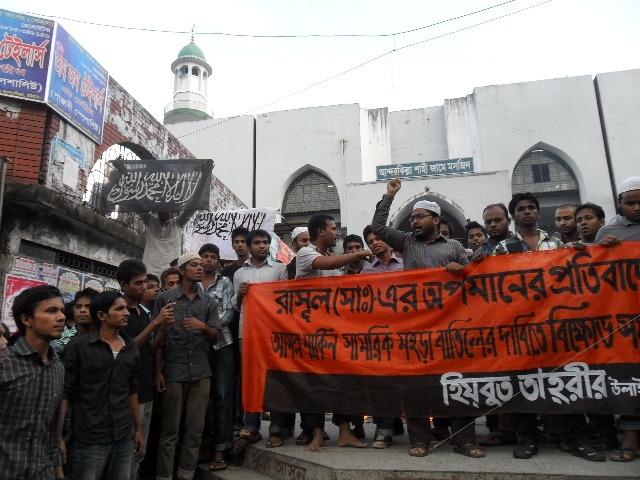 تظاهر المسلمون في شيتاغونغ تحت قيادة حزب التحرير خارج المسجد الكبير، بعد صلاة العصر احتجاجا على إهانة شرف النبي عليه الصلاة والسلام من قبل الأمريكان الأوغاد، وقد أرسلوا رسالة واضحة لأمريكا بأنّه يجب أن لا تفكر بأنّ المسلمين سيظلون صامتين على إهانة نبيهم الحبيب عليه الصلاة والسلام، كما يتعين على أمريكا أن تضع في حسبانها أنّه كما أنّ المسلمين من الرعيل الأول دافعوا عن النبي محمد صلى الله عليه وسلم بكل ما يملكون، فإنّ أحفادهم من المسلمين اليوم لن يتقاعسوا عن المنافحة عنه، عليه الصلاة والسلام، فالمسلمون يحبون الرسول صلى الله عليه وسلم أكثر من أنفسهم، تماما كما قال رَسُول اللَّهِ صَلَّى اللَّهُ عَلَيْهِ وَسَلَّمَ: "فَوَ الَّذِي نَفْسِي بِيَدِهِ لَا يُؤْمِنُ أَحَدُكُمْ حَتَّى أَكُونَ أَحَبَّ إِلَيْهِ مِنْ وَالِدِهِ وَوَلَدِهِ".