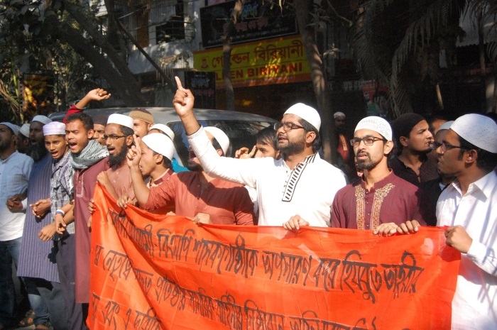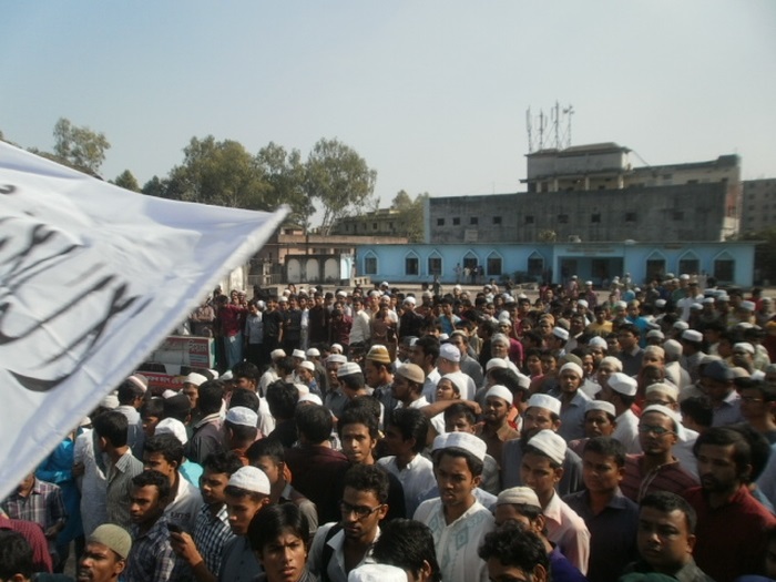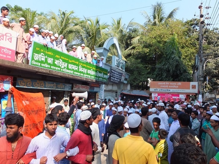 نظّم حزب التحرير/ ولاية بنغلادش وقفات خطابية أمام العديد من المساجد الرئيسة في دكا وتشيتاجونج وسيلهيت اليوم؛ للمطالبة من الضباط المخلصين في الجيش الإطاحة بنظام تحالف عوامي وحزب الشعب الحاكم، ومطالبتهم بإقامة دولة الخلافة تحت قيادة حزب التحرير من خلال إعطائهم النصرة للحزب، وتأتي هذه الوقفات العامة ضمن الحملة المستمرة التي يقوم بها الحزب لحمل الناس على تبني ونشر الدعوة إلى هذا المطلب، وقد انضم الكثير من المصلين مع أعضاء ومناصري الحزب في تلك التجمعات وأعربوا عن تأييدهم المطلق لهذا المطلب. وقد تمت الوقفات أمام المساجد التالية:
