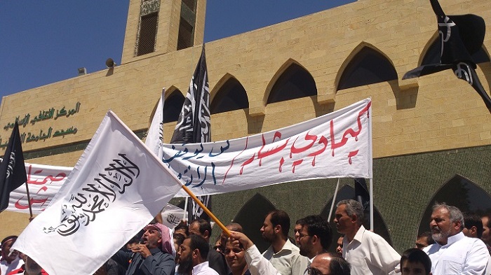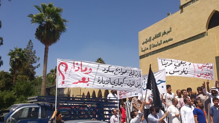 تمت بحمد الله الوقفات التي دعا لها حزب التحرير- ولاية الأردن تنديدا بمجازر الطاغية بشار واستصراخا للجيوش النائمة، وذلك على إثر ضرب نظام بشار المجرم الغوطة بالأسلحة الكيماوية. وقد أقام الحزب أمس الجمعة 16 شوال 1434هـ الموافق 23 آب/أغسطس 2013م ست وقفات في مدن أردنية عدة، ففي مدينة عمان أقام الحـزب وقفة أمام مسجد الجامعة الأردنية وأمام مسجد القصراوي في جبل النصر وأمام مسجد المدارس في الوحدات، وفي مدينة الزرقاء أمام مسجد آل مكتوم وفي مدينة الرصيفة أمام مسجد يوسف الصديق وفي مدينة إربد أمام مسجد الفيحاء.