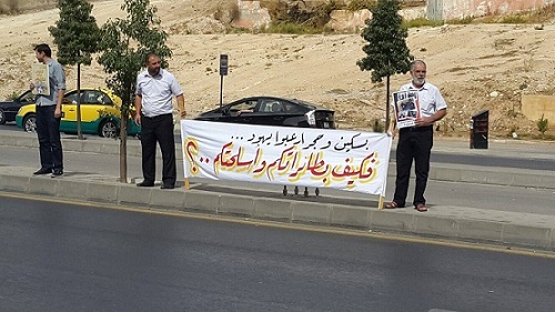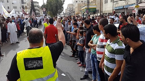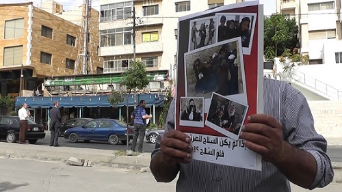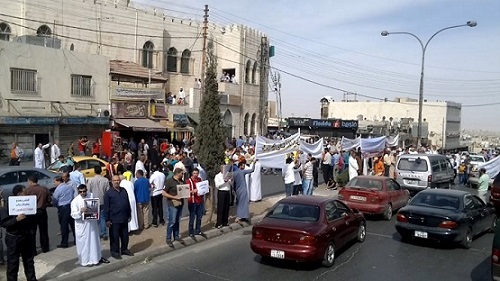 وسط تواجد أمني كثيف وحضور إعلامي، نفذ حزب التحرير / ولاية الأردن اليوم الجمعة 2015/10/23 وقفتين نصرة للأقصى وحثا للجيوش على التحرك لنصرته، وذلك في كل من منطقة حي نزال في العاصمة عمان وعلى دوار معصوم في مدينة الزرقاء، فيما منعت قوات الأمن والدرك وقفة الحزب في مدينة إربد بعد أن حولت قوات الأمن محيط مسجد جامعة اليرموك إلى ثكنة عسكرية وأغلقوا أبواب المسجد ليجبروا المصلين على الخروج من باب واحد، وقاموا بححز البطاقات الشخصية لعدد من المشاركين واعتدوا بالضرب على أحد المشاركين واعتقاله، كما وفضوا وقفة الحزب أمام جريدة الرأي مهددين باستخدام القوة وفق أوامر وزارة الداخلية كما أفاد ضابط الأمن المسؤول في الموقع.