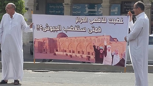 ألا تعلم أيها النظام، أن المسلمين أمة واحدة من دون الناس، ألا تعلم أن المسجد الأقصى جزء من عقيدة المسلمين، لن يستطيع أحد أن يؤثر على مكانته عند المسلمين أو ينهي استعدادهم التام للتضحية بالنفس والنفيس من أجل مرضاة الله ورسوله عليه الصلاة والسلام.