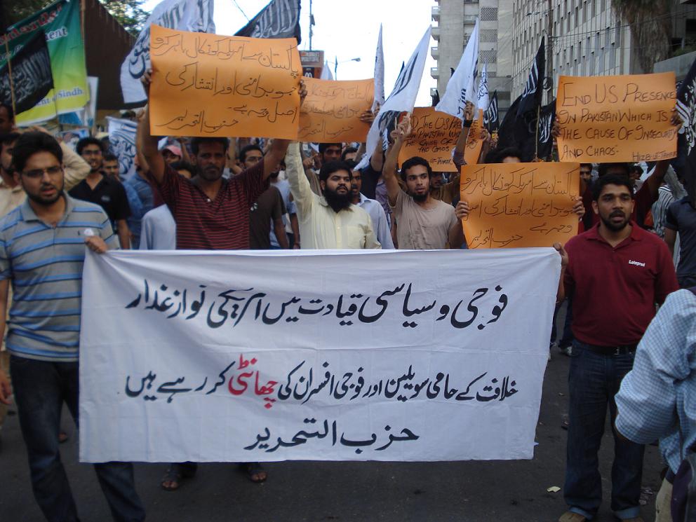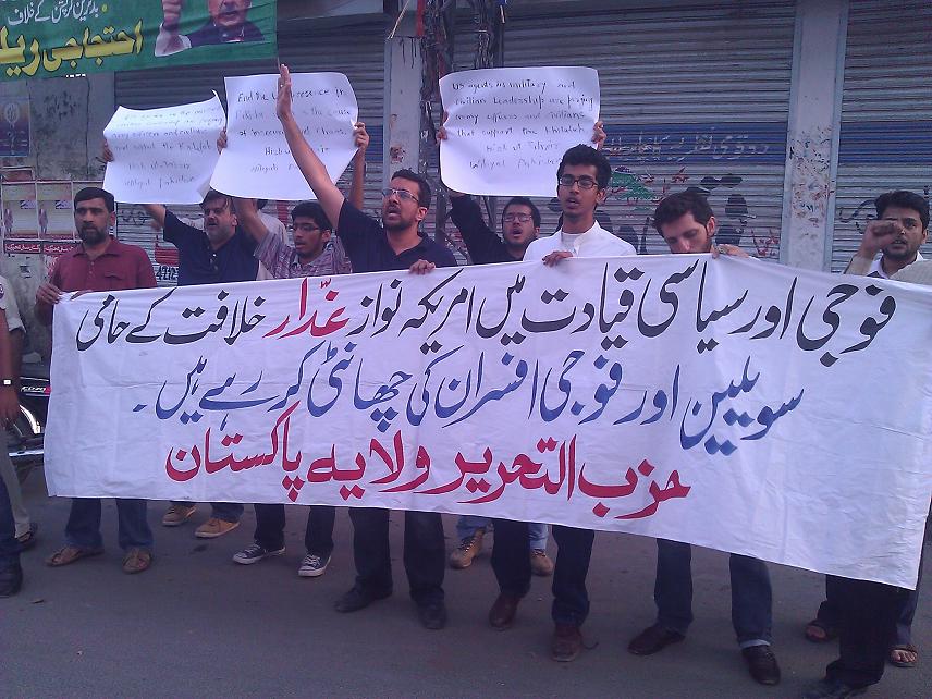 نظم حزب التحرير احتجاجات في كراتشي ولاهور وإسلام أباد وبيشاور ضد اضطهاد الحكومة للمؤيدين للخلافة من بين المدنيين والضباط العسكريين، وقد حمل المتظاهرون لافتات كتب عليها "الموالون للولايات المتحدة من الخونة في القيادة المدنية والعسكرية يمارسون سياسة "تطهير" المؤيدين للخلافة من بين المدنيين والعسكريين" و"اطردوا أمريكا من باكستان، فهي السبب الحقيقي للفوضى والاضطراب". وقال أعضاء حزب التحرير بينما كانوا يلقون خطابا في المحتجين أنّ الحكام العملاء يعملون على "تطهير" البلاد من الذين يعملون من أجل الخلافة من المؤسسات المدنية والعسكرية. وعلاوة على ذلك، لا يزال جرّاح الأسنان الشهير من رحيم يار خان، الدكتور عبد القيوم، يواجه التعذيب في سجون أجهزة الحكومة السرية منذ ثمانية أشهر.