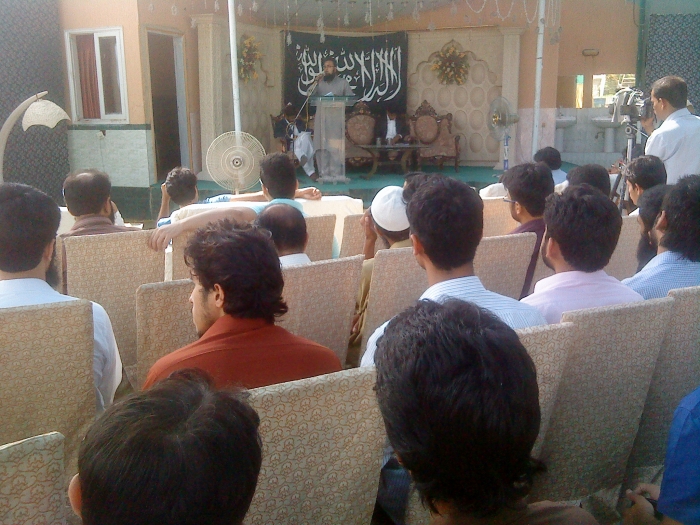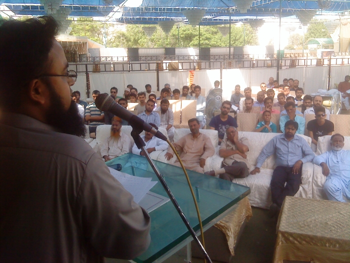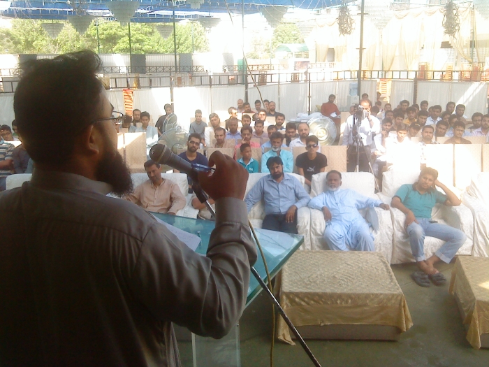 وفي الندوة التي عقدت في كراتشي، أكد المهندس "سهام" على أهمية السعي لأخذ النصرة من أجل إقامة الخلافة الإسلامية. وقدمت الندوة تجربة الجزائر ومصر كمثال يتضح من خلاله أنّ التغيير الحقيقي لا يمكن أن يكون عن طريق تأمين الأغلبية في البرلمانات بالانتخابات أو عن طريق حشد مئات الآلاف من الناس في الشوارع، بل يكون بضمان نصرة الضباط المخلصين في الجيش لحكم الإسلام، واستدلت الندوة على ذلك في قيام رسول الله (صلى الله عليه وسلم)- بوحي من الله سبحانه وتعالى- بطلب النصرة من القبائل القوية، وفي استمراره في ذلك حتى نصره الأنصار، حيث أقام الدولة الإسلامية في المدينة بنصرتهم. والتأسي برسول الله (صلى الله عليه وسلم)، واتباع طريقته في إقامة الدولة الإسلامية واجب لا يجوز للمسلمين مخالفته.