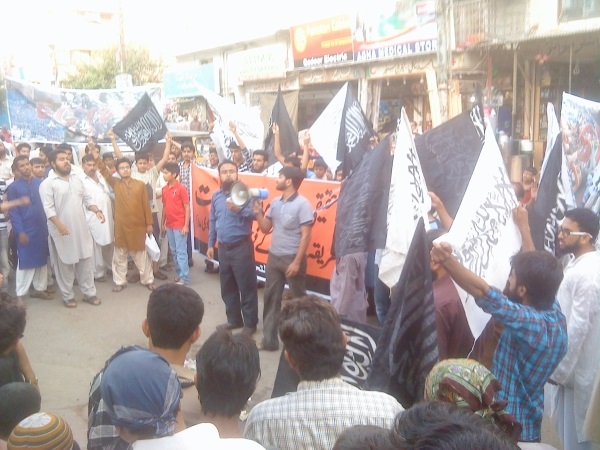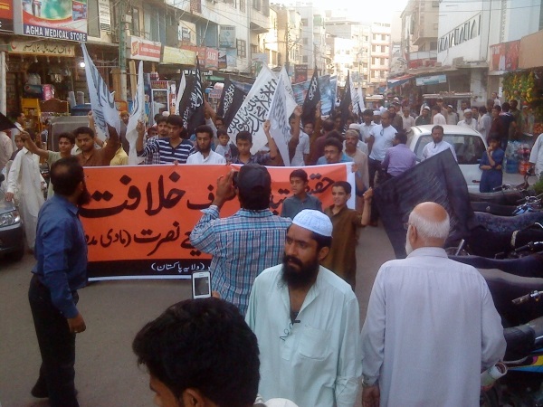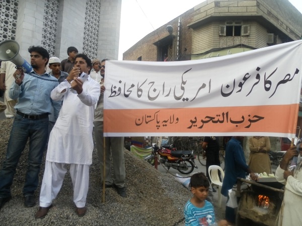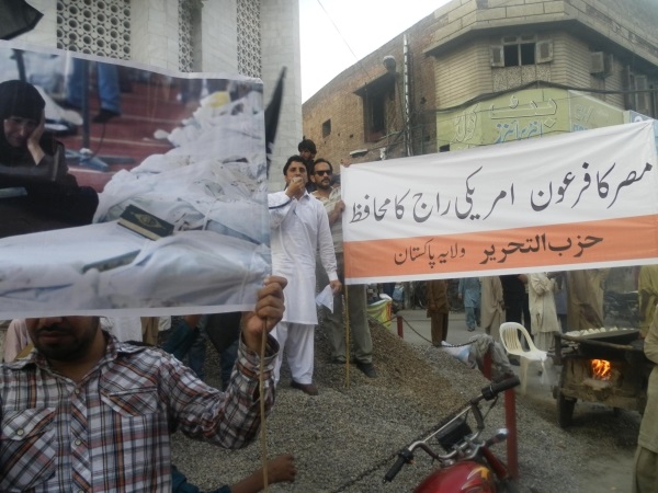 دعماً للمسلمين في مصر وسوريا نظّم حزب التحرير في ولاية باكستان مظاهرات في جميع أنحاء البلاد، رُفعت فيها لافتات كُتب عليها: "فرعون مصر يحافظ على الهيمنة الأميركية على حساب جثث المسلمين"، و "قتل المسلمين في سوريا لن يمنع إقامة دولة الخلافة"، و "أطيحوا بالديمقراطية (سيف أمريكا المسلّط على الأمة) وأقيموا دولة الخلافة (جُنّة الأمة)".