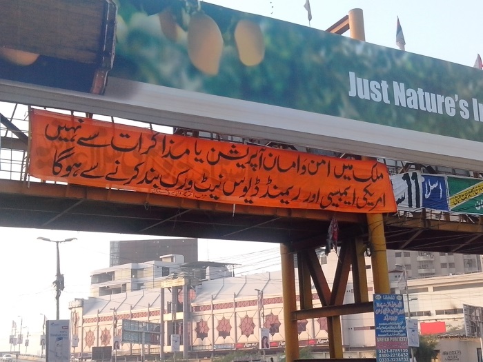 علّق حزب التحرير / ولاية باكستان لافتات ضخمة في الأماكن العامة في أكبر المدن الباكستانية، كراتشي، موطن أكثر من عشرين مليون نسمة، وقد كُتب على اللافتات ما يؤكد على أنّ الأمن والأمان لن يتحققا في البلاد إلا بعد القضاء على شبكة ريموند ديفيس الأميركية في باكستان، وأنّ الخلافة هي التي ستقضي على الوجود الأميركي في البلاد، فهو سبب التفجيرات والفوضى في باكستان.