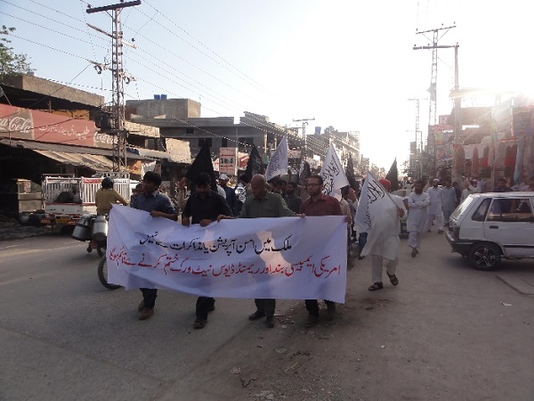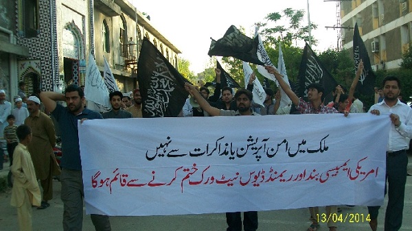نظّم حزب التحرير / ولاية باكستان مسيرات عديدة في جميع أنحاء البلاد ضد الوجود الأمريكي ولوضع حدٍّ له، وقد انضم إلى هذه المسيرات المئات من الناس، حملوا فيها لافتات كتب عليها: "استعادة الأمن ليس ممكنا عن طريق التفاوض أو العمليات العسكرية، بل بإغلاق السفارة الأمريكية وملاحقة شبكة ريموند ديفيس"، و"ستنتهي موجة التفجيرات في البلاد بالقضاء على شبكة ريموند ديفيس"، و"الديمقراطية هي الوصي على الهيمنة الأمريكية، بينما الخلافة هي درع المسلمين".