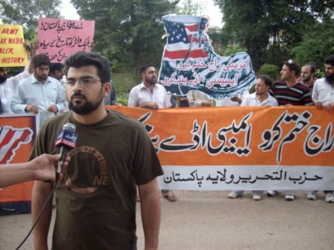 نظم حزب التحرير مظاهرات احتجاجية في إسلام أباد وكراتشي ولاهور وبيشاور حمل المتظاهرون فيها يافطات اتخذت شكل حذاء مكتوب عليها شعار "اقضوا على الاحتلال الأمريكي وأغلقوا القواعد العسكرية والسفارة الأمريكية". وقد كانت الغاية من حمل تلك اليافطات التأكيد للناس على إمكانية إنهاء الوجود الأمريكي في البلاد بركله بالحذاء. إذ إن الحذاء أصبح "رمزاً وطنياً" للولايات المتحدة الأمريكية بعد أن ضُرب به بوش في العراق. نُظمت هذه المظاهرات خارج النوادي الصحفية في كل من كراتشي ولاهور وأمام المكتب الصحفي في إسلام أباد وفي سوق قاسي كواني في بيشاور.