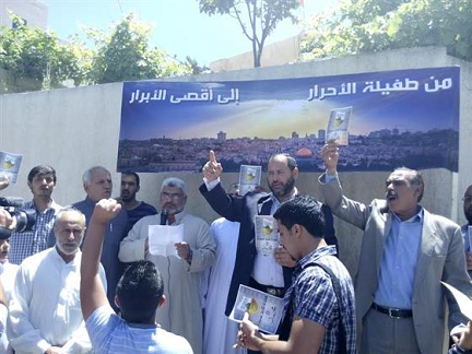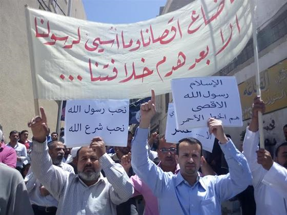 ورفع المشاركون في الوقفة شعارات منها منها "عندما هدمت دولة الاسلام ضاع مسری رسول الانام " و شعار "انصروا رسول الله بتطبيق شرع الله و شعار" الاسلام عقيدة و نظام و دستور دولة " شعار "ما ضاع اقصانا و ما اسيئ لرسولنا الا بعد هدم خلافتنا " و شعار " من طفيلة الاحرار الی اقصی الابرار ".
