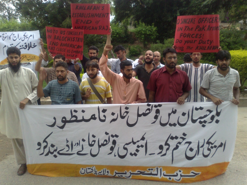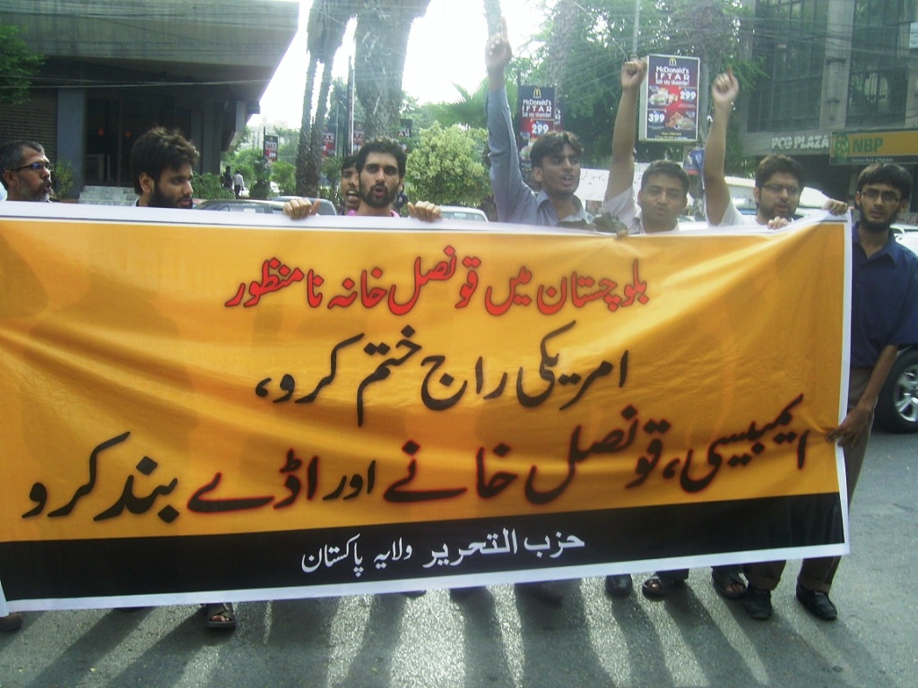 نظّم حزب التحرير ولاية باكستان الأربعاء، 24 آب 2011 تظاهرات في جميع أرجاء البلاد ضد الوجود المكثف الأمريكي في باكستان، والذي يشكل تهديدا حقيقيا لأمن المسلمين، وأكد المتحدثون في التظاهرات على أنه لا يكفي للحكام الخونة رفض فتح قنصلية أميركية في بلوشستان ردا على الغضب العارم داخل القوات المسلحة وبين الجماهير، في الوقت الذي تتمركز فيه مشاة البحرية الأميركيين (المارينز) قرب الحدود في شامان بلوشستان، ووجود السفارة المحصنة في العاصمة والقنصليات المتعددة والقواعد التي ينطلق منها الجيش الأميركي والاستخبارات للإشراف على التفجيرات والاغتيالات في جميع أنحاء البلاد.