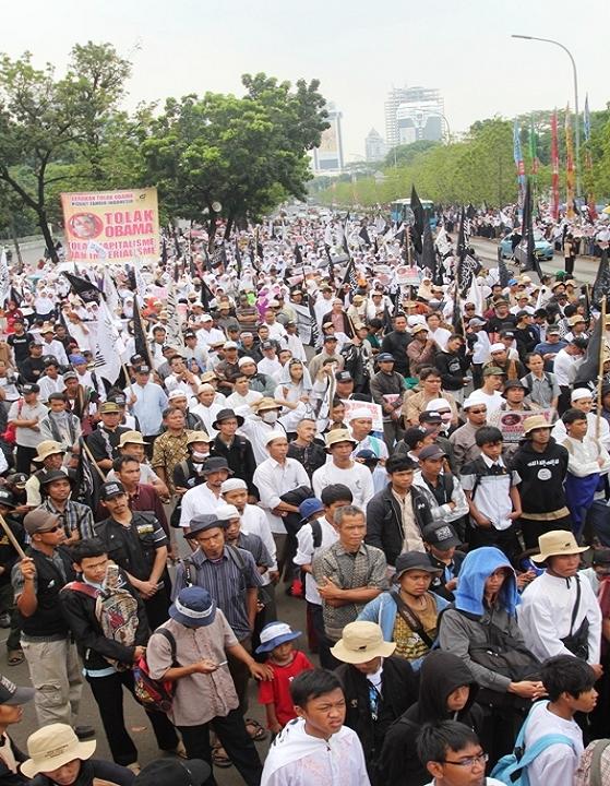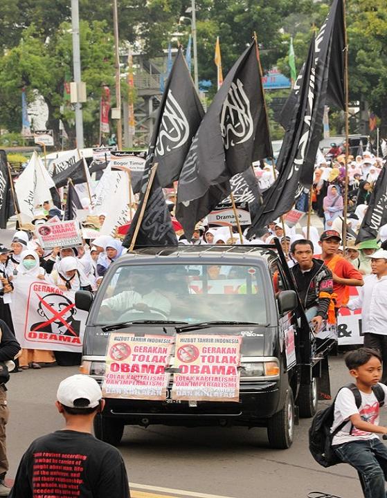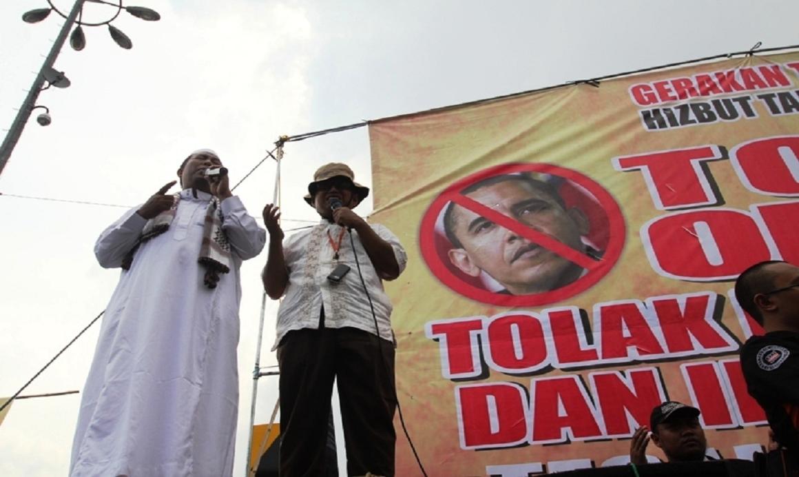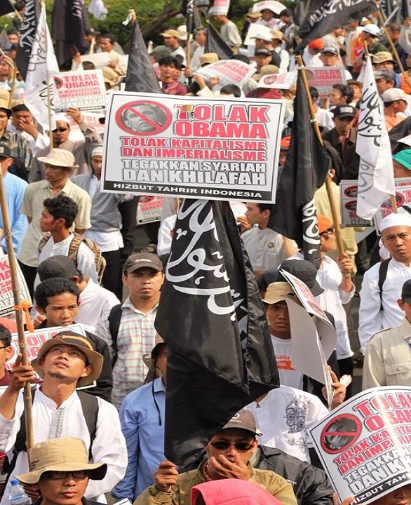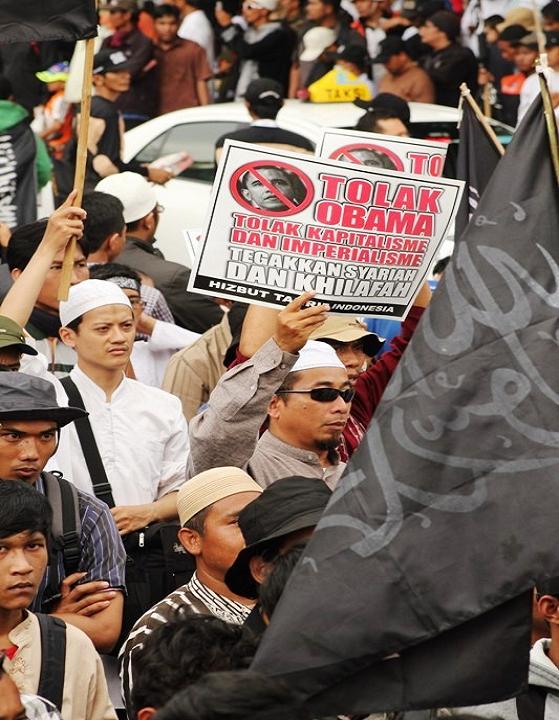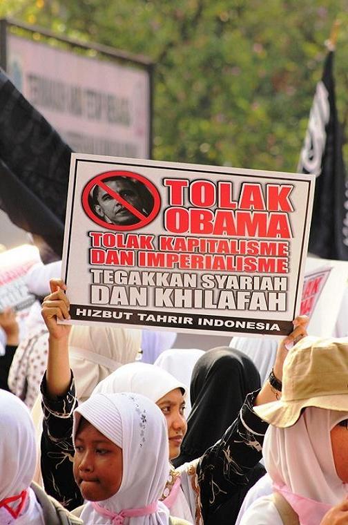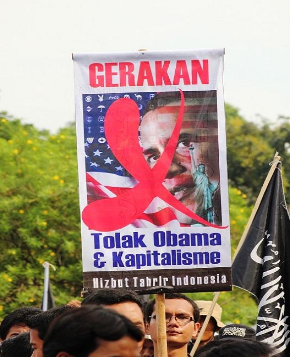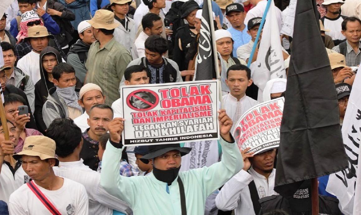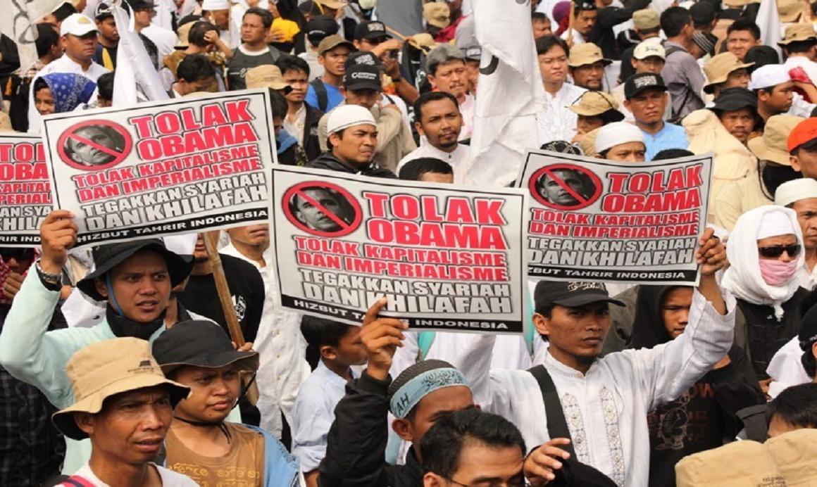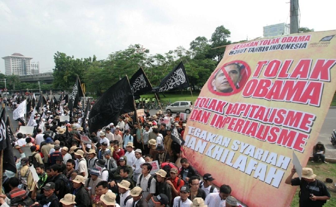 تظاهر نحو 20 ألف من أعضاء وأنصار حزب التحرير إندونيسيا جنبا إلى جنب مع الأمة الإسلامية ، وقاموا بتنظيم احتجاج يسمى بـ " رفض تحركات أوباما " أمام السفارة الاميركية في جاكرتا ضد الزيارة المرتقبة لأوباما إلى إندونيسيا يوم الاحد (13 نوفمبر) .