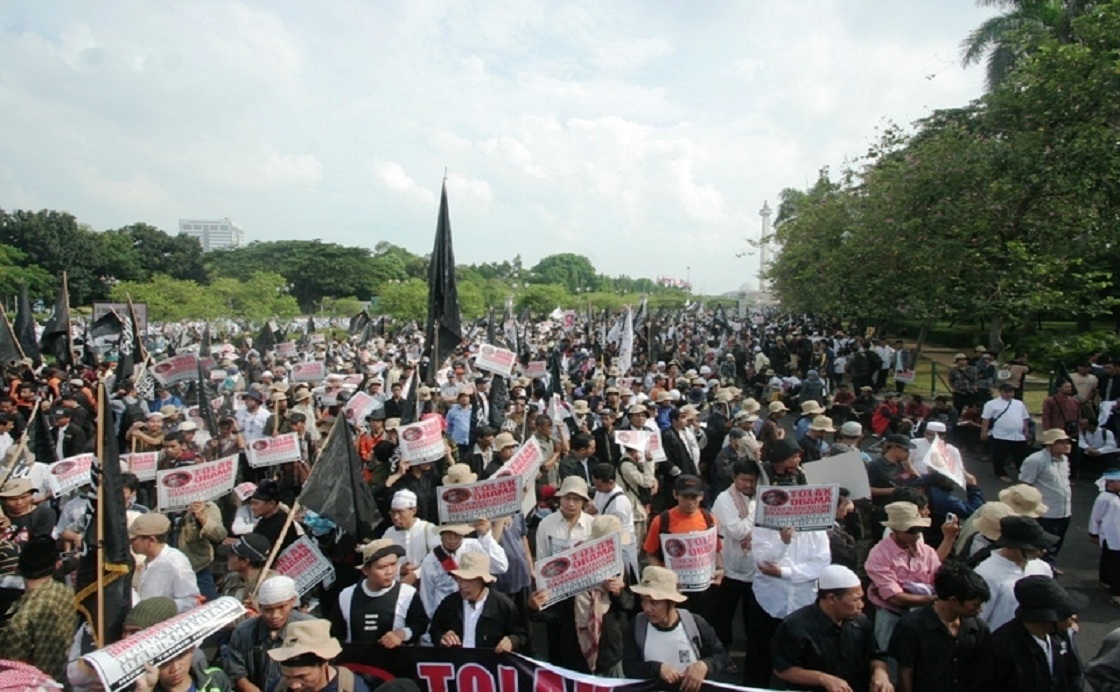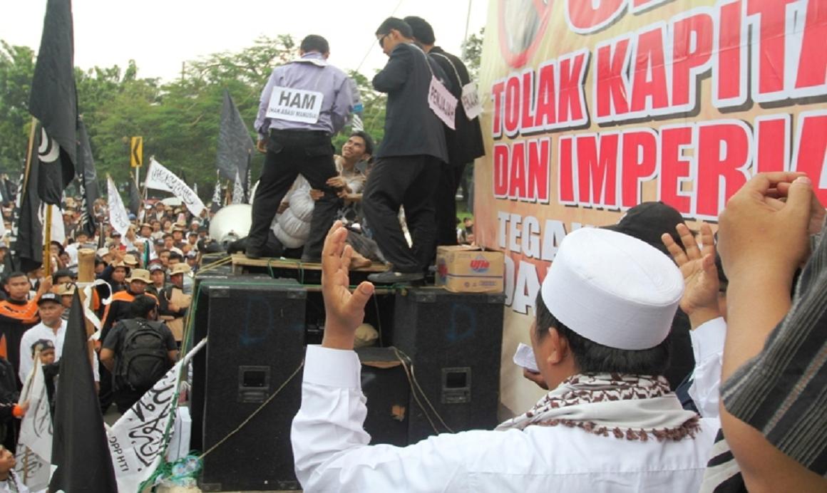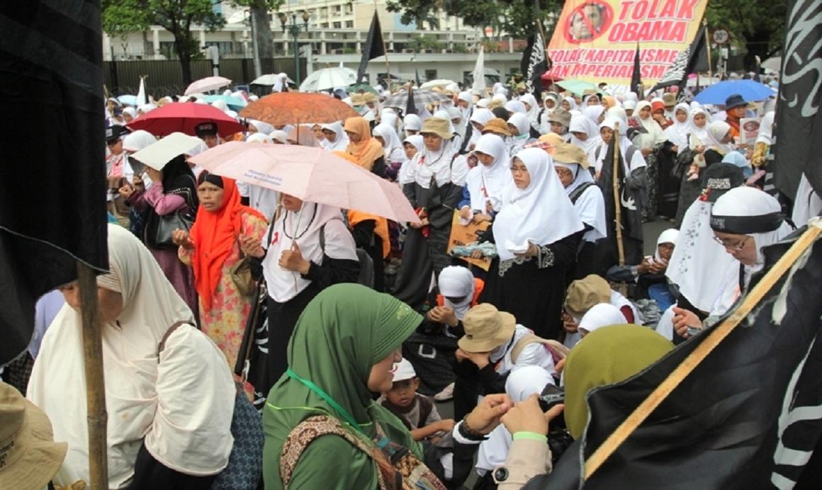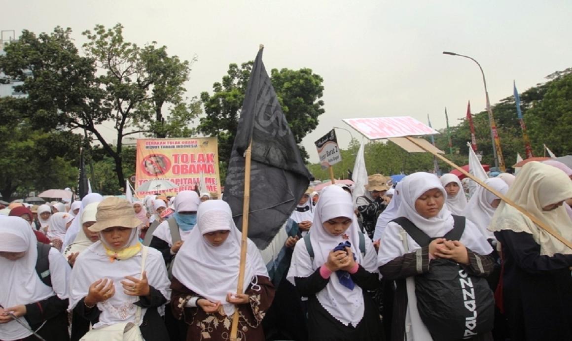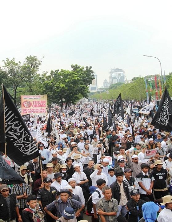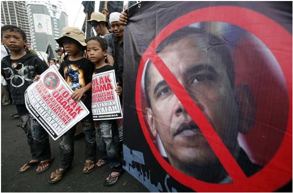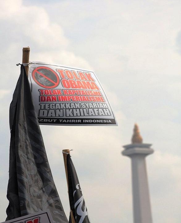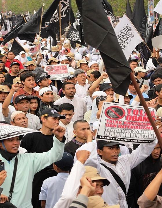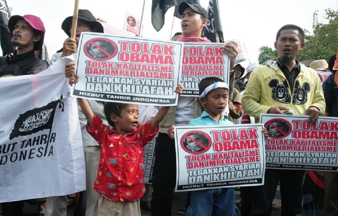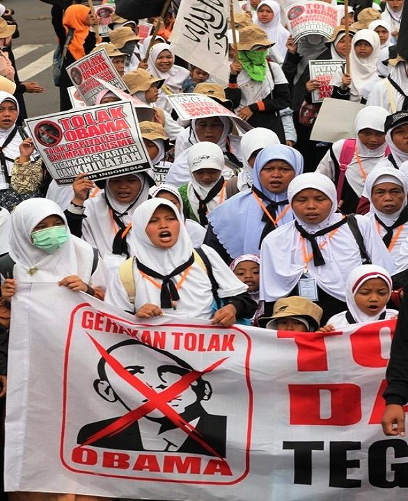 تظاهر نحو 20 ألف من أعضاء وأنصار حزب التحرير إندونيسيا جنبا إلى جنب مع الأمة الإسلامية ، وقاموا بتنظيم احتجاج يسمى بـ " رفض تحركات أوباما " أمام السفارة الاميركية في جاكرتا ضد الزيارة المرتقبة لأوباما إلى إندونيسيا يوم الاحد (13 نوفمبر) .