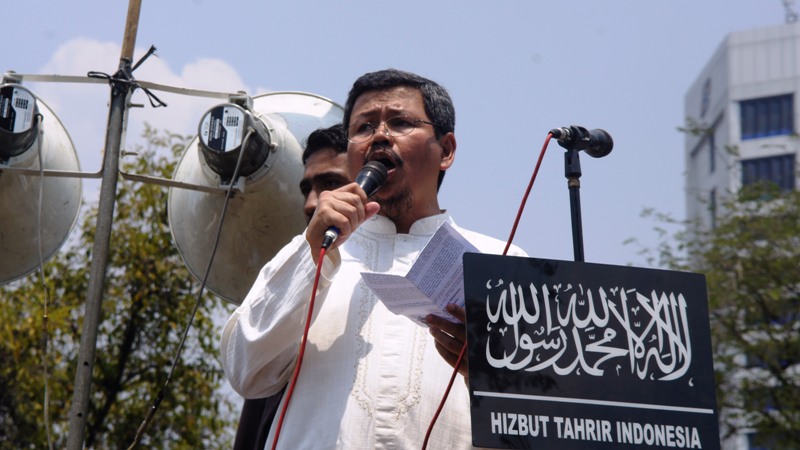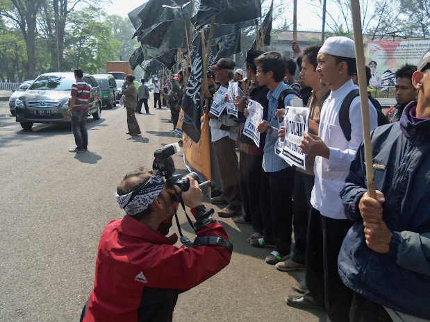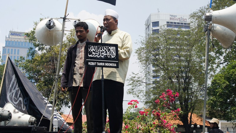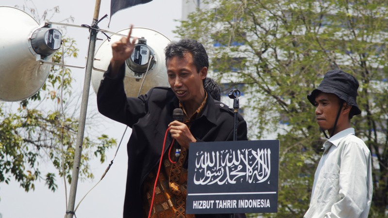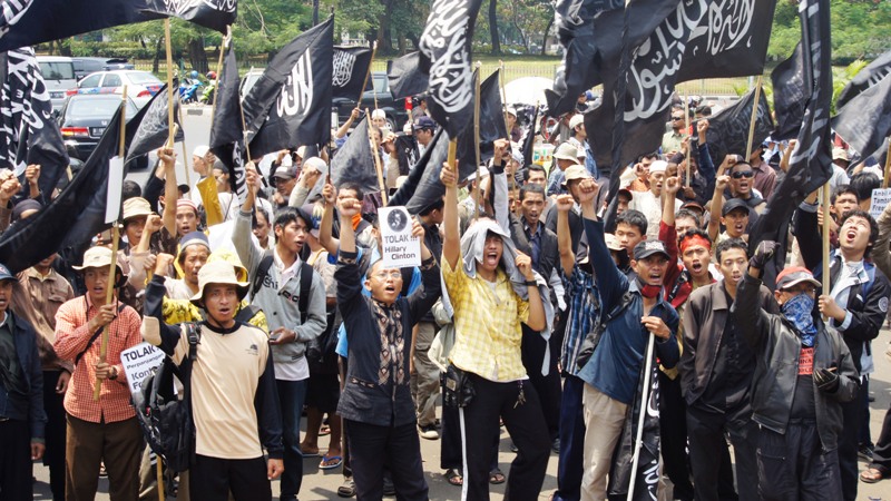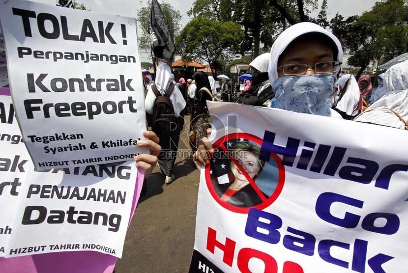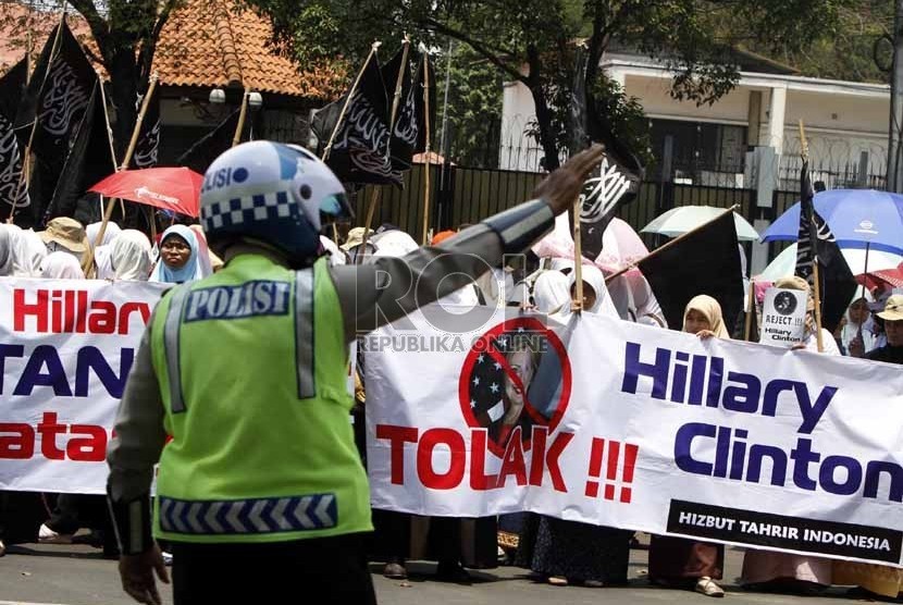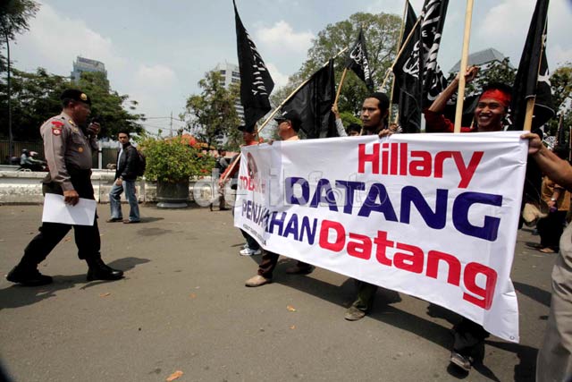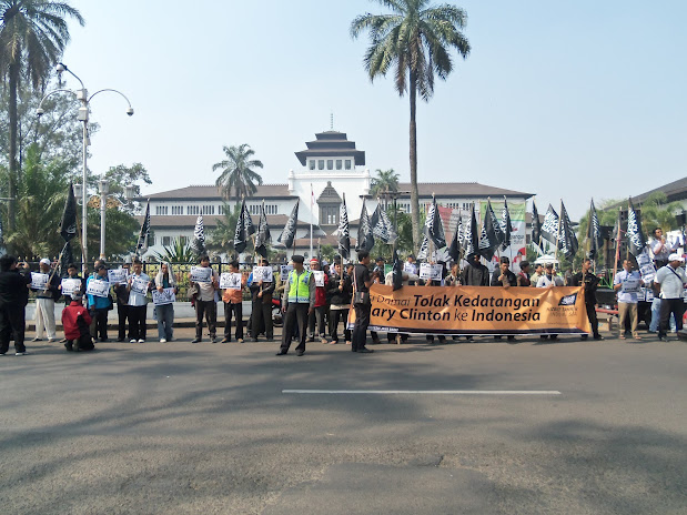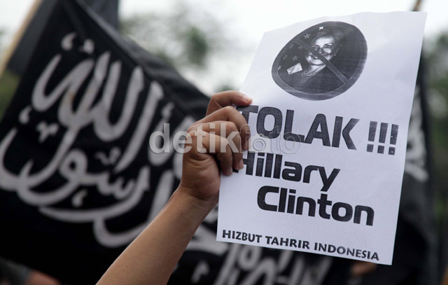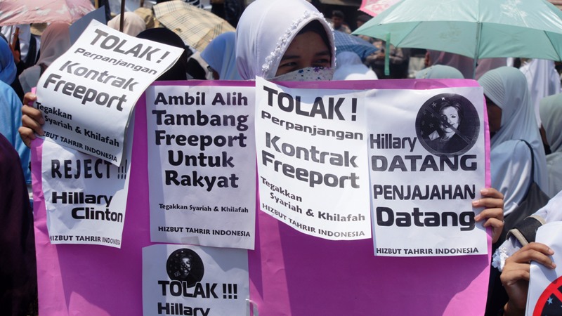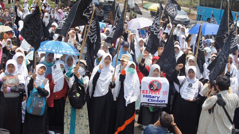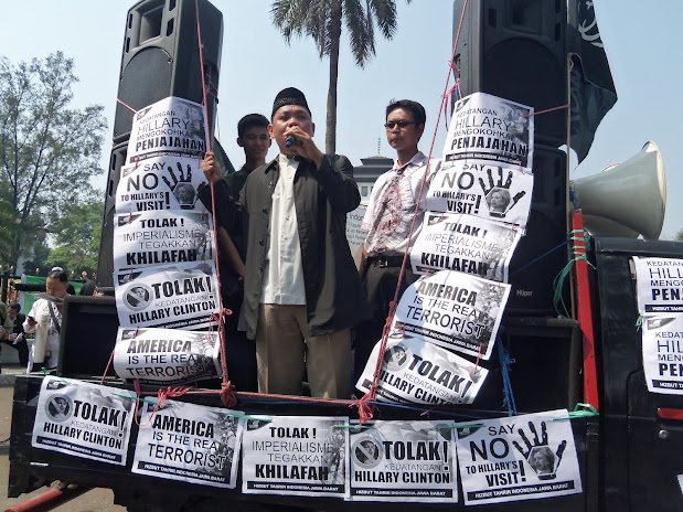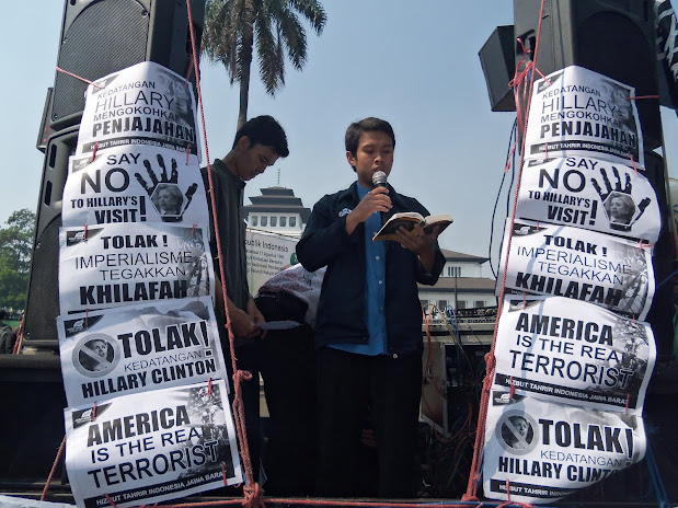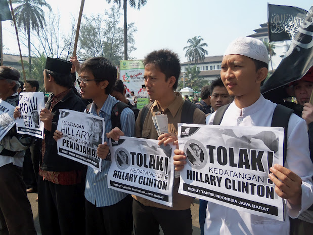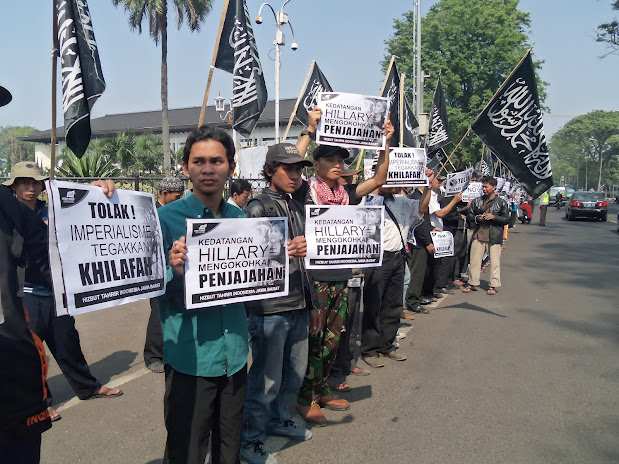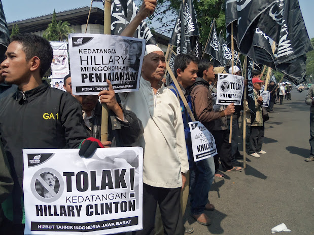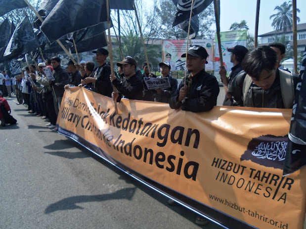 جانب من الفعاليات التي نظمها حزب التحرير / إندونيسيا ضد زيارة هيلاري كلينتون