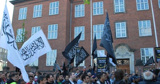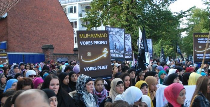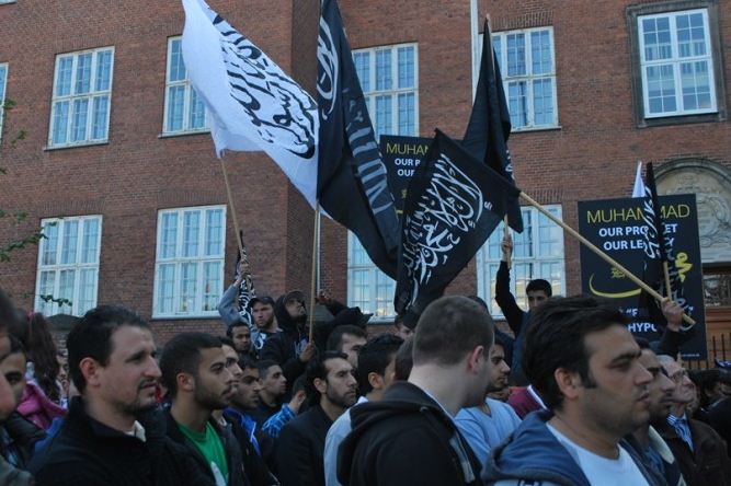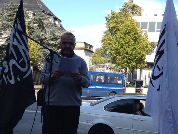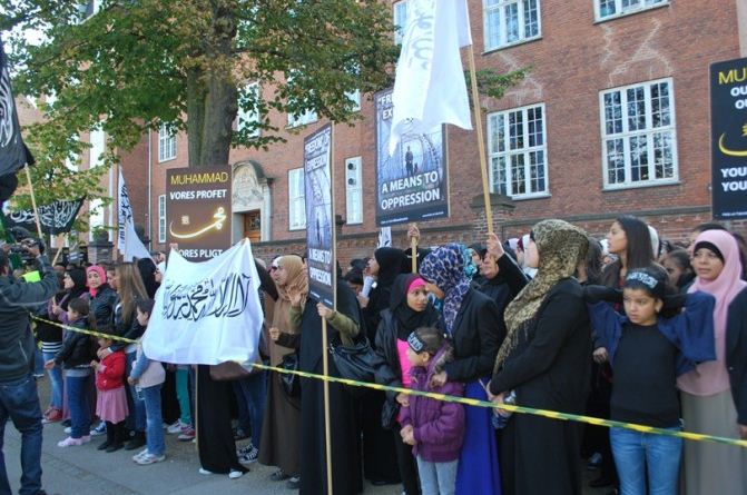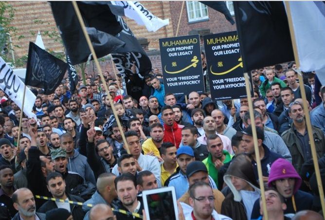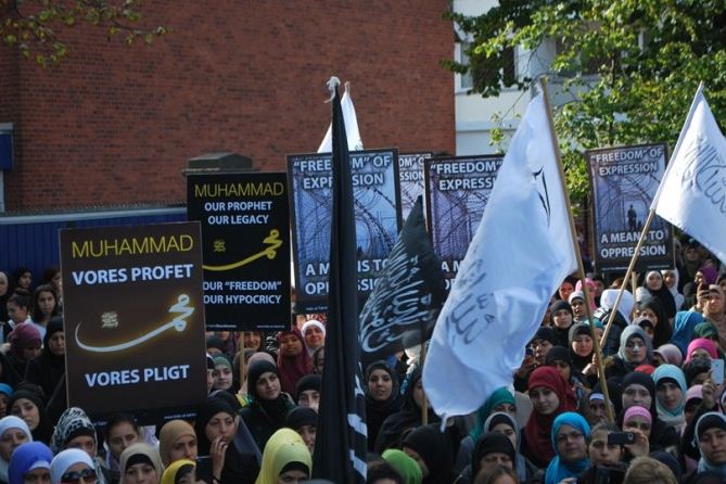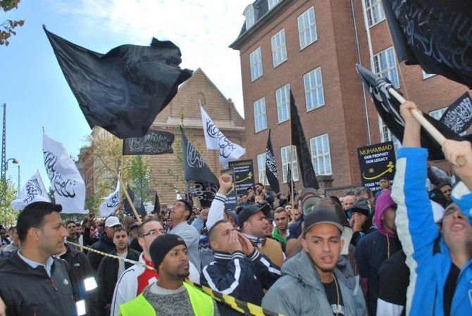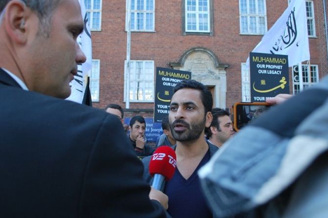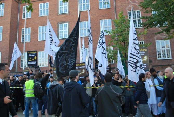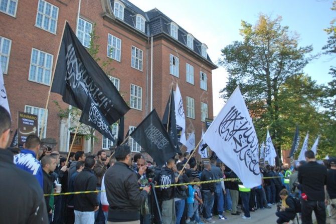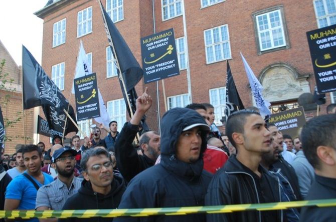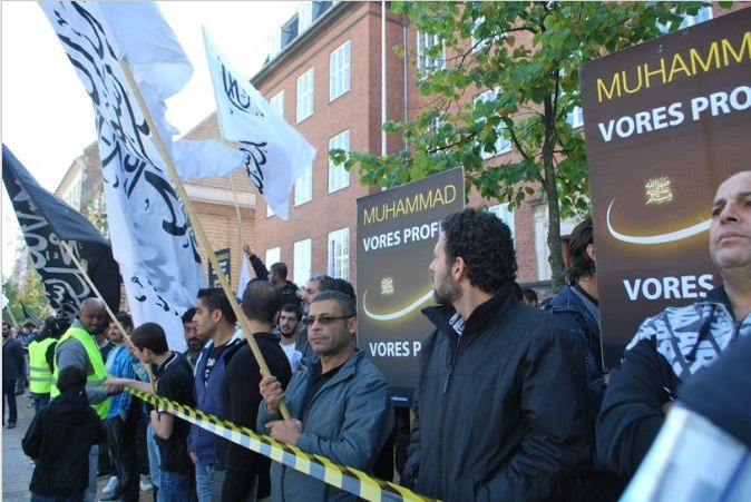 اعتصام امام السفارة الامريكية في كوبنهاجن، الدنمرك، تحت شعار رسولنا واجبنا