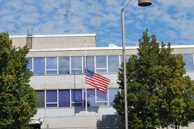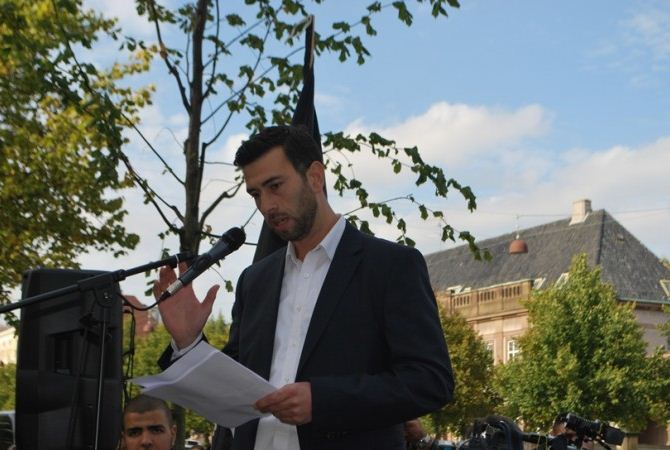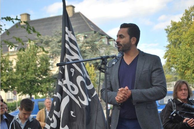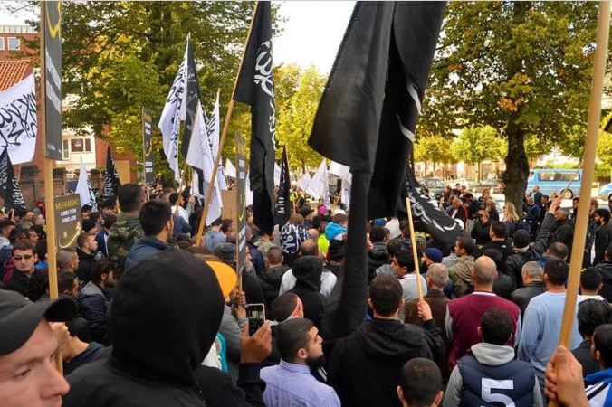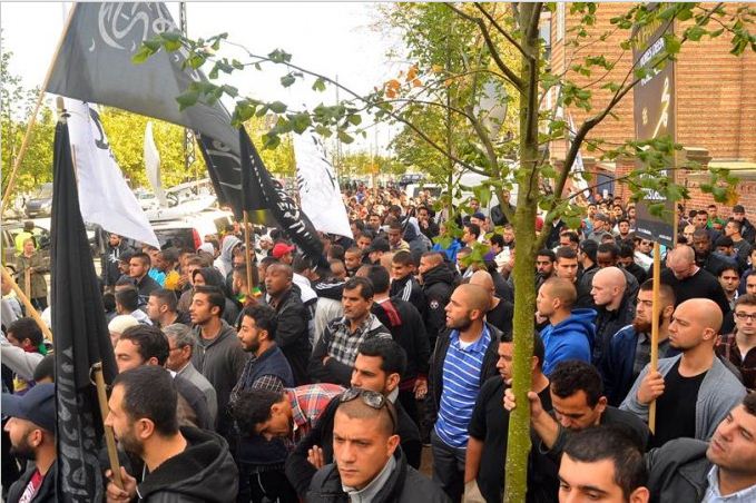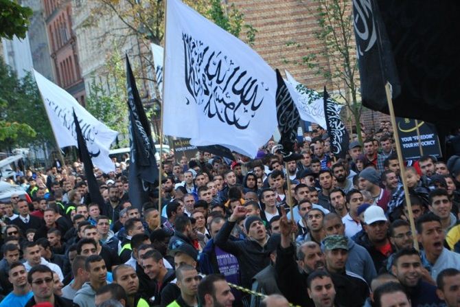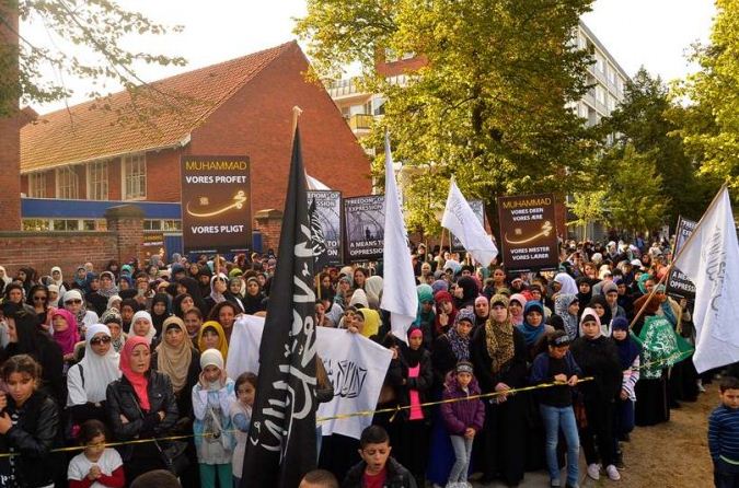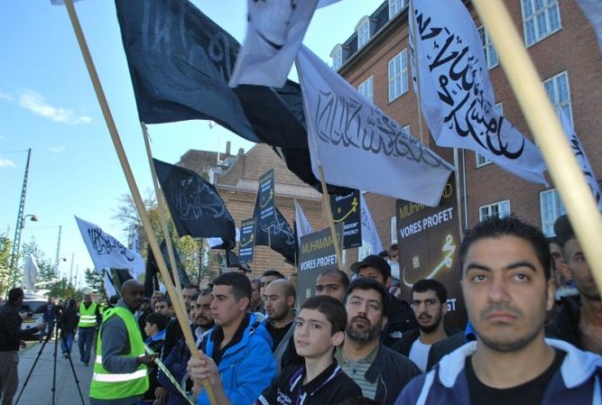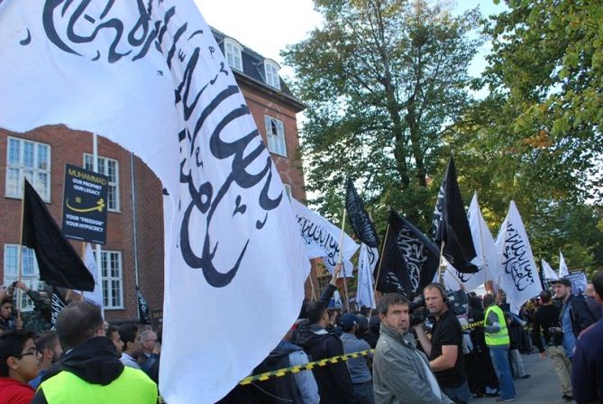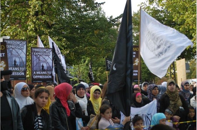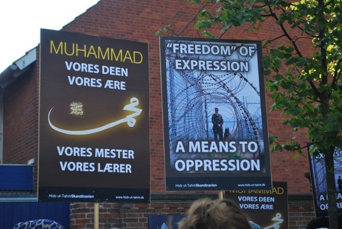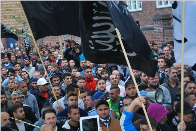 اعتصام امام السفارة الامريكية في كوبنهاجن، الدنمرك، تحت شعار رسولنا واجبنا