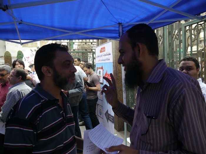 استكمالاً للحملة الواسعة التي باشر حزب التحرير/ولاية مصر تنظيمها للتعريف بمشروع دستور دولة الخلافة تحت شعار "دستور مصر يجب أن يكون دستوراً إسلامياً"، قام شباب الحزب يوم الجمعة 02 محرم الحرام 1434هـ الموافق 16 تشرين الثاني/نوفمبر 2012م بنصب خيمتهم المتنقلة أمام مسجد الفتح في القاهرة، حيث خاضوا نقاشات بناءة مع جموع المصلين التي واصلت توافدها على الخيمة بأعداد كبيرة، والحمد لله رب العالمين.