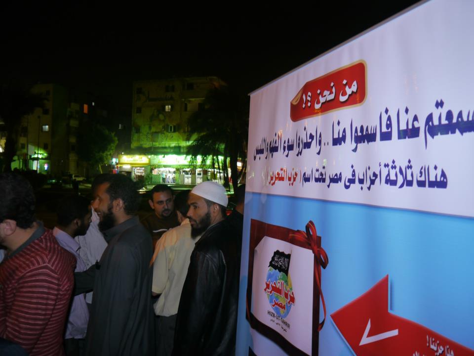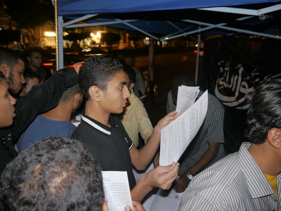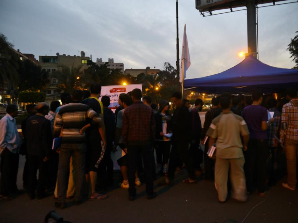 استكمالاً للحملة المتواصلة الواسعة التي باشر حزب التحرير / ولاية مصر تنظيمها منذ أشهر للتعريف بمشروع دستور دولة الخلافة تحت شعار "دستور مصر يجب أن يكون دستوراً إسلامياً"، قام شباب الحزب يوم الأربعاء 07 محرم الحرام 1434هـ الموافق 21 تشرين الثاني/ نوفمبر 2012م بنصب خيمتهم المتنقلة أمام المدينة الجامعية بجامعة الأزهر، حيث خاضوا نقاشات بناءة مع طلبة العلم الذين واصلوا توافدهم على الخيمة بأعداد كبيرة، والحمد لله رب العالمين.
