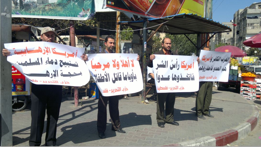 مكتب فلسطين: من غزة "لا أهلاً ولا سهلاً بك أوباما" حزب التحرير ينظم وقفات رمزية في قطاع غزة رفضًا لزيارة أوباما