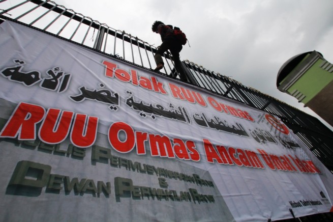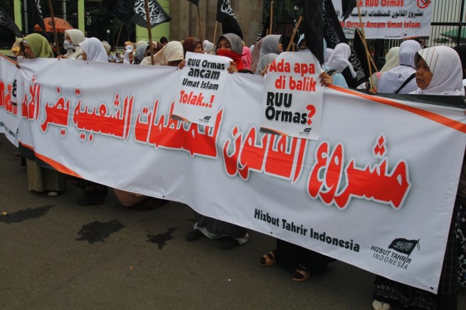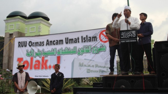 حزب التحرير/ إندونيسيا ينظم مسيرة لرفض وثيقة التنظيم الجماعي