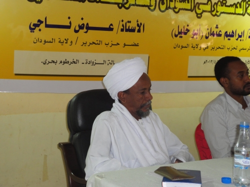 وتناول المتحدث الثاني، الأستاذ/ عوض ناجي، عضو حزب التحرير/ ولاية السودان، علاج أزمة الدستور في السودان وفي العالم الإسلامي كله، وواقع الإنسان، وهل الإنسان قادر أن يضع دستوراً من عقله؟ وكيف يكون هناك دستور دائم قائم على أساس الإسلام؟ وتحدث كذلك عن مشروع الدستور الذي يتبناه حزب التحرير وعرض بعض المواد منه والمتعلقة بنظام الحكم وبعض الأحكام العامة، وهذا الدستور لا تطبقه إلا دولة قائمة على أساس العقيدة الإسلامية وهي دولة الخلافة الراشدة.
