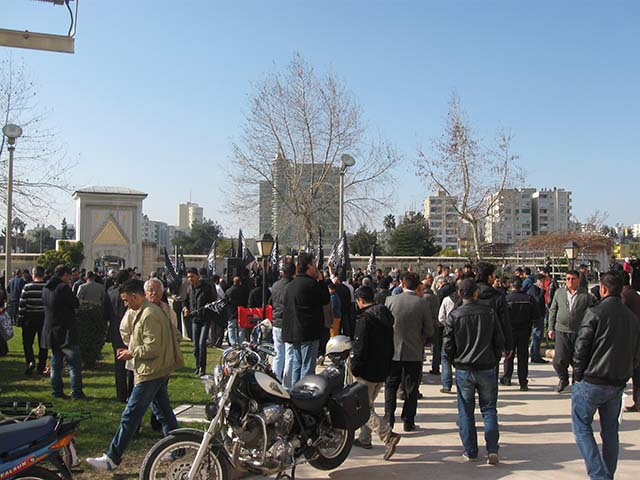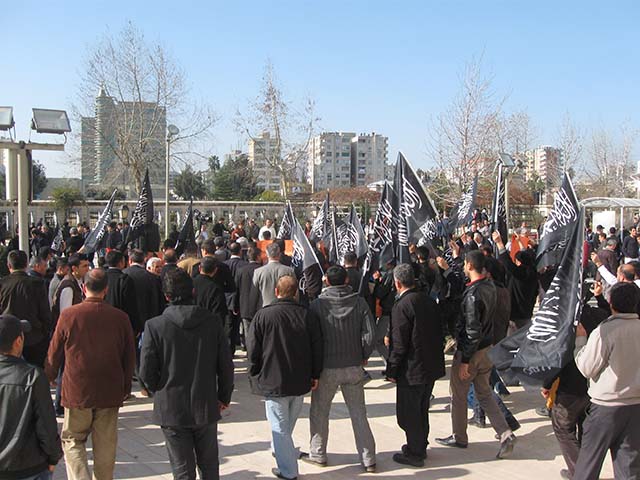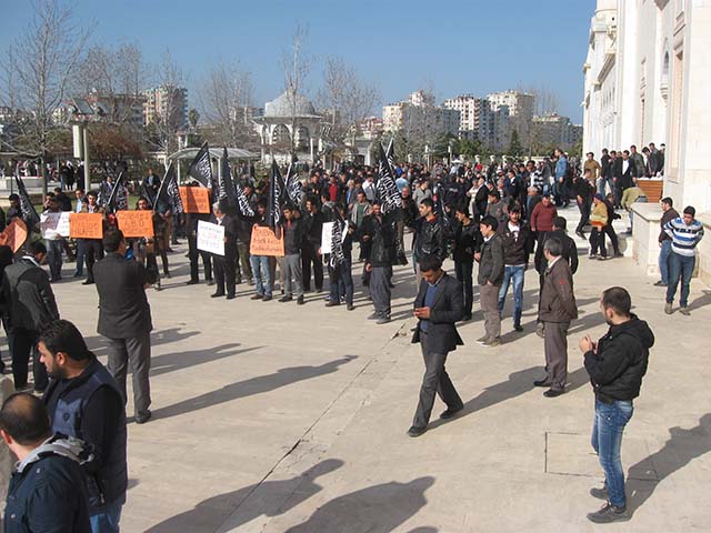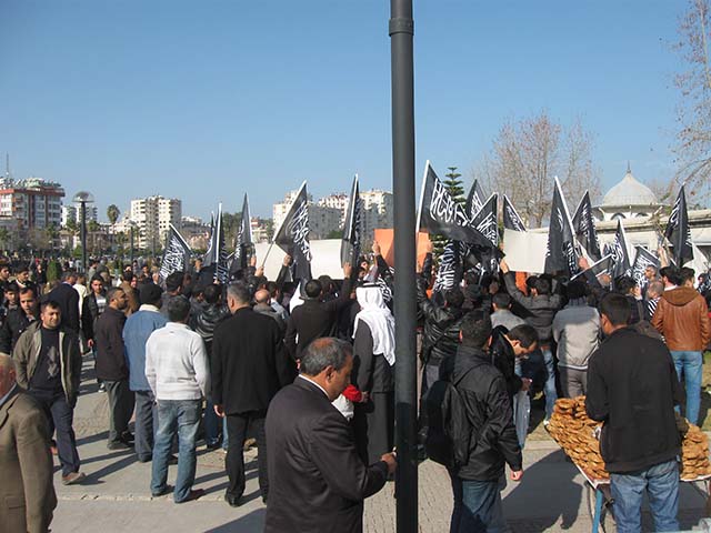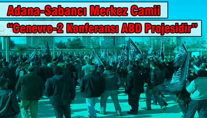 ولاية تركيا: وقفة في أضنة لرفض مؤتمر جنيف-2 نظم شباب وأنصار حزب التحرير / ولاية تركيا في جامع صابانجي بأضنة وقفة قرأ فيها بيان صحفي للتأكيد على أن مؤتمر جنيف-2 هو مؤتمر تآمري خياني.. الجمعة، 16 ربيع الأول 1435هـ الموافق 17 كانون الثاني/يناير 2014م